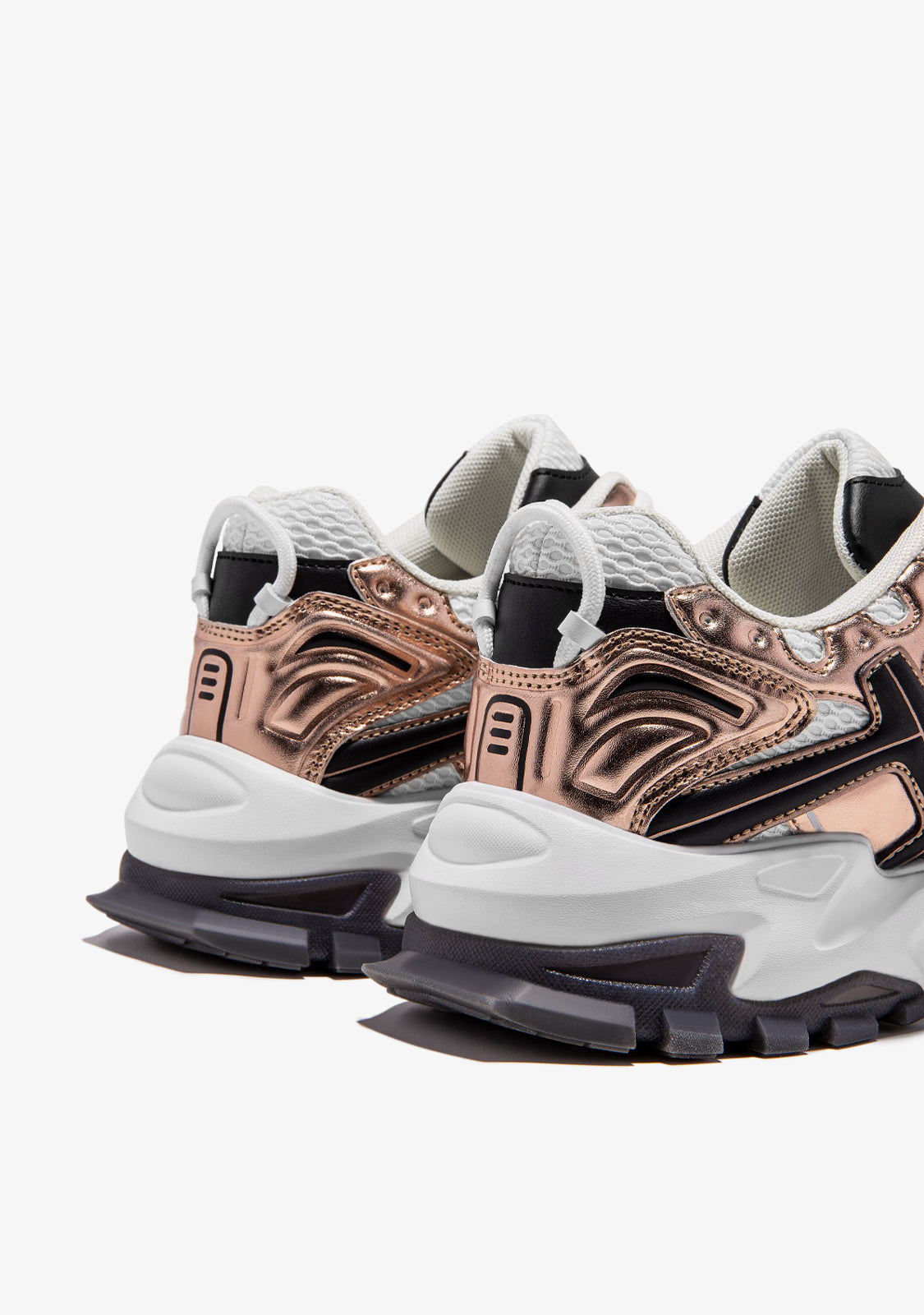 Our 347 has the ultimate chunky essence. Its heavyweight nylon mesh is combined with different finishes and shades of white, gold and black. It features our emblem on the front. And the signature dual-density TR sole contrasts with the colour of the design for added cushioning.
