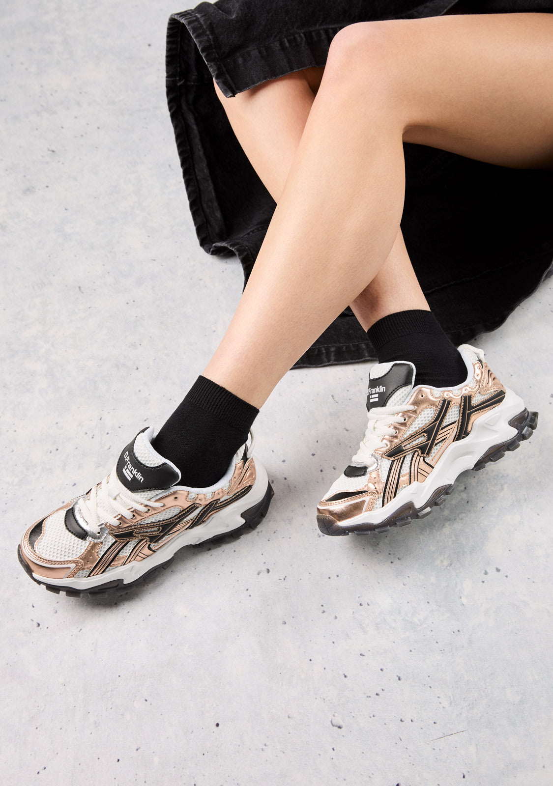 D.Franklin track style sneakers. We channelled the nostalgia of the nineties into an updated design. Textures, colours and finely tuned details fuse together to create a contrasting aesthetic.