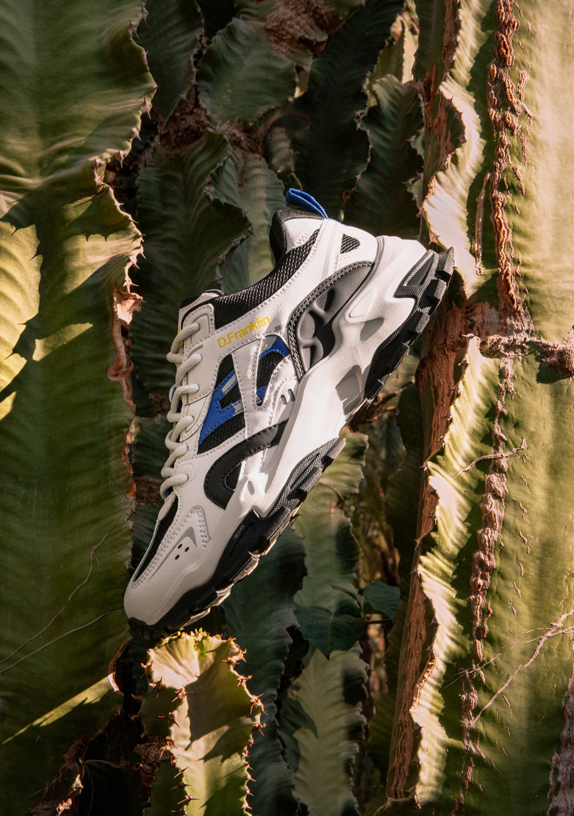 D.Franklin track style sneakers. We channelled the nostalgia of the nineties into an updated design. Textures, colours and finely tuned details fuse together to create a contrasting aesthetic.