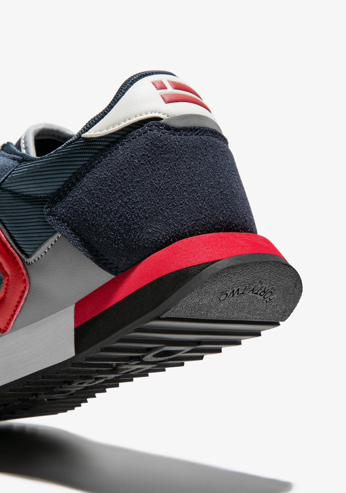 This model has a classic blue aesthetic with red details. It features the letter D of our emblem on the side. It also features cotton laces for a perfect fit. The dual-density serrated sole provides a comfortable, lightweight fit and good grip.