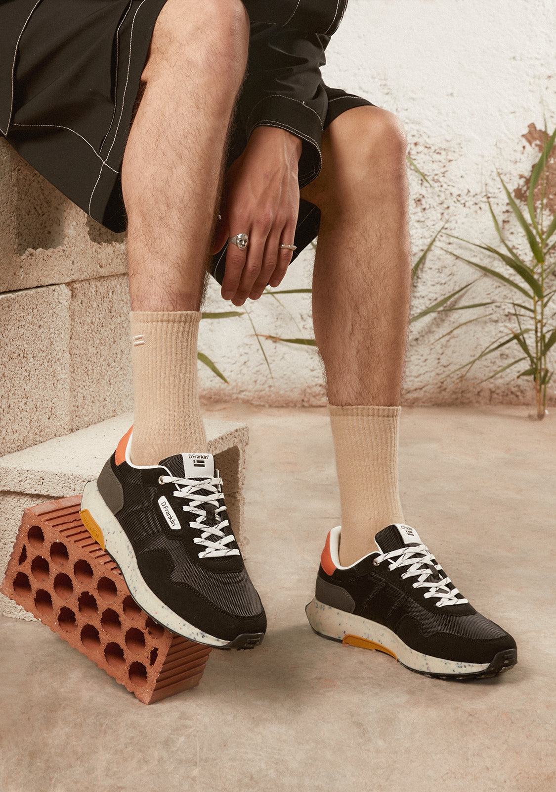 This model combines the simplicity of neutral tones in a design that stands out for its uniqueness. It features D.Franklin branding on the side and cotton laces for a perfect fit. It also has a two-density sole. The first is made of recycled materials for a comfortable and light tread, and the second is embossed to provide grip.