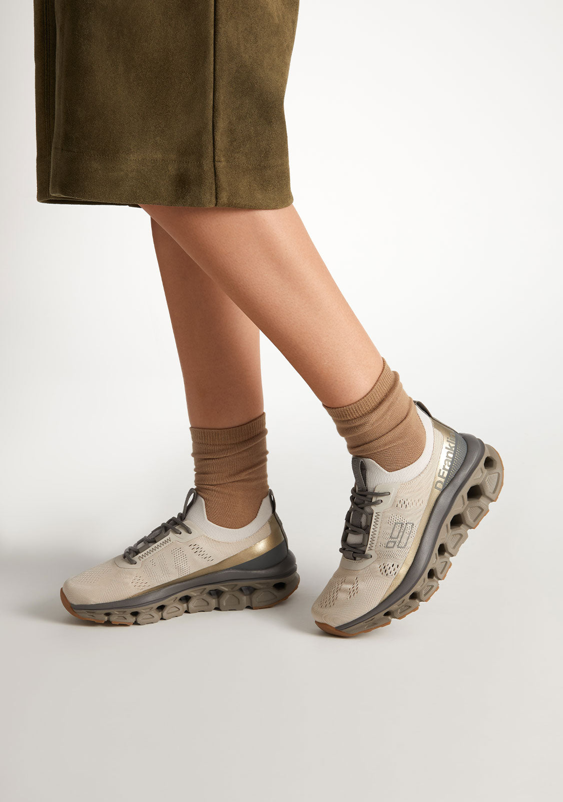 The Aero Cream / Gold by D.Franklin combine the elegance of cream with the shiny touch of gold, creating a sophisticated and stylish sneaker. Perfect for those seeking a versatile yet bold option.