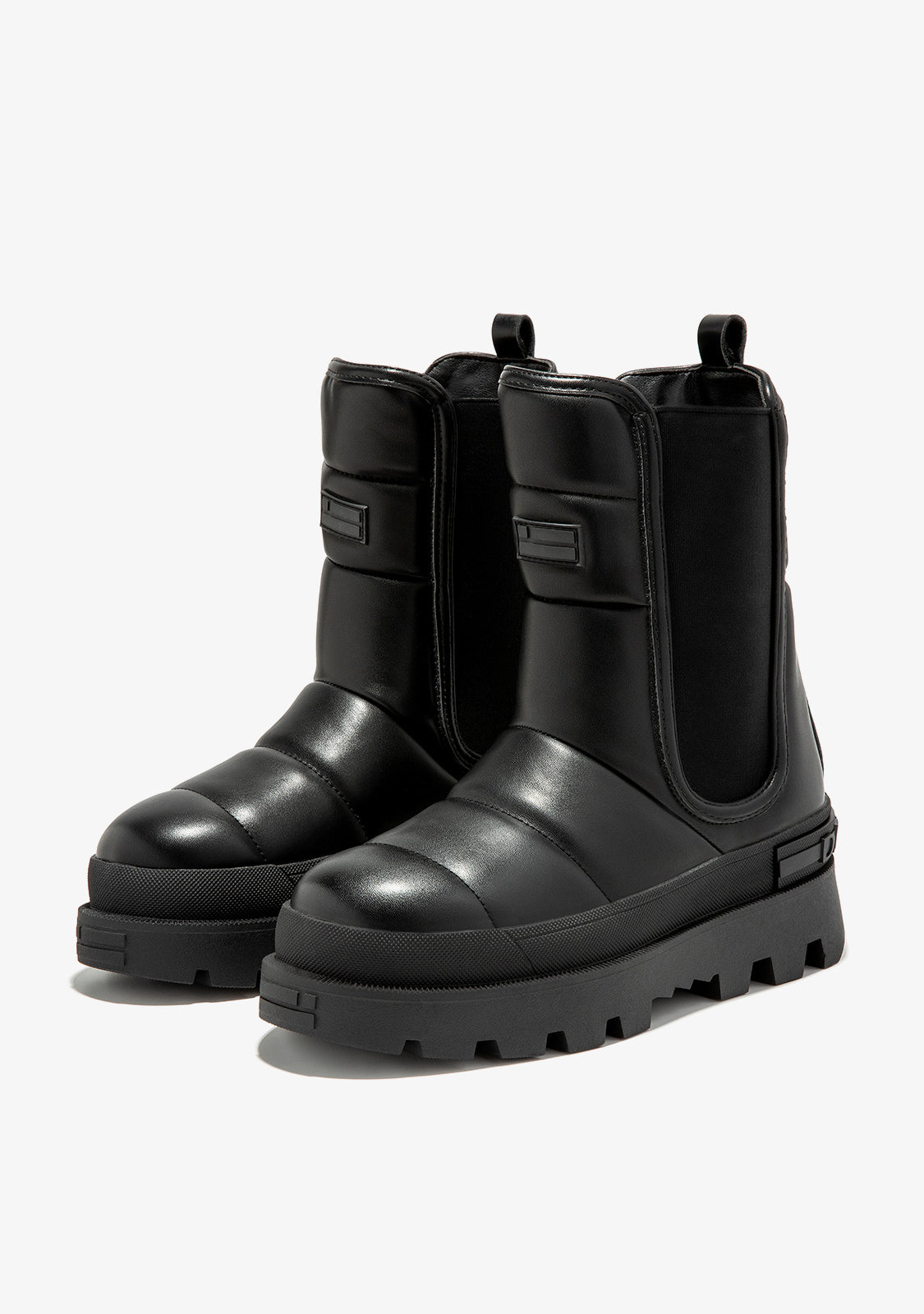 Low-cut boots with a padded aesthetic. A design that stands out for its simplicity and impeccable finish. Strategically created to define your outfits.