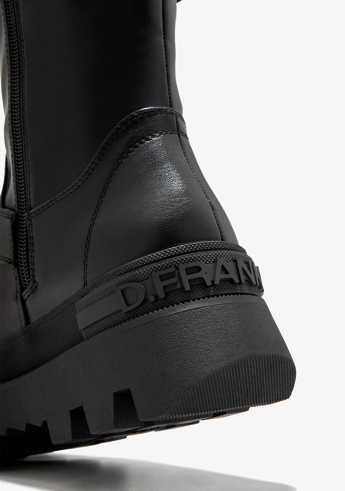 This D.Franklin model in black features an inner zipper on one side for a perfect fit. Its track-style sole provides unmatched grip. It features our logo and emblem embossed on the wedge and toe. Additionally, it has the iconic buckle details on the lower and upper part, adding to its characteristic aesthetic.