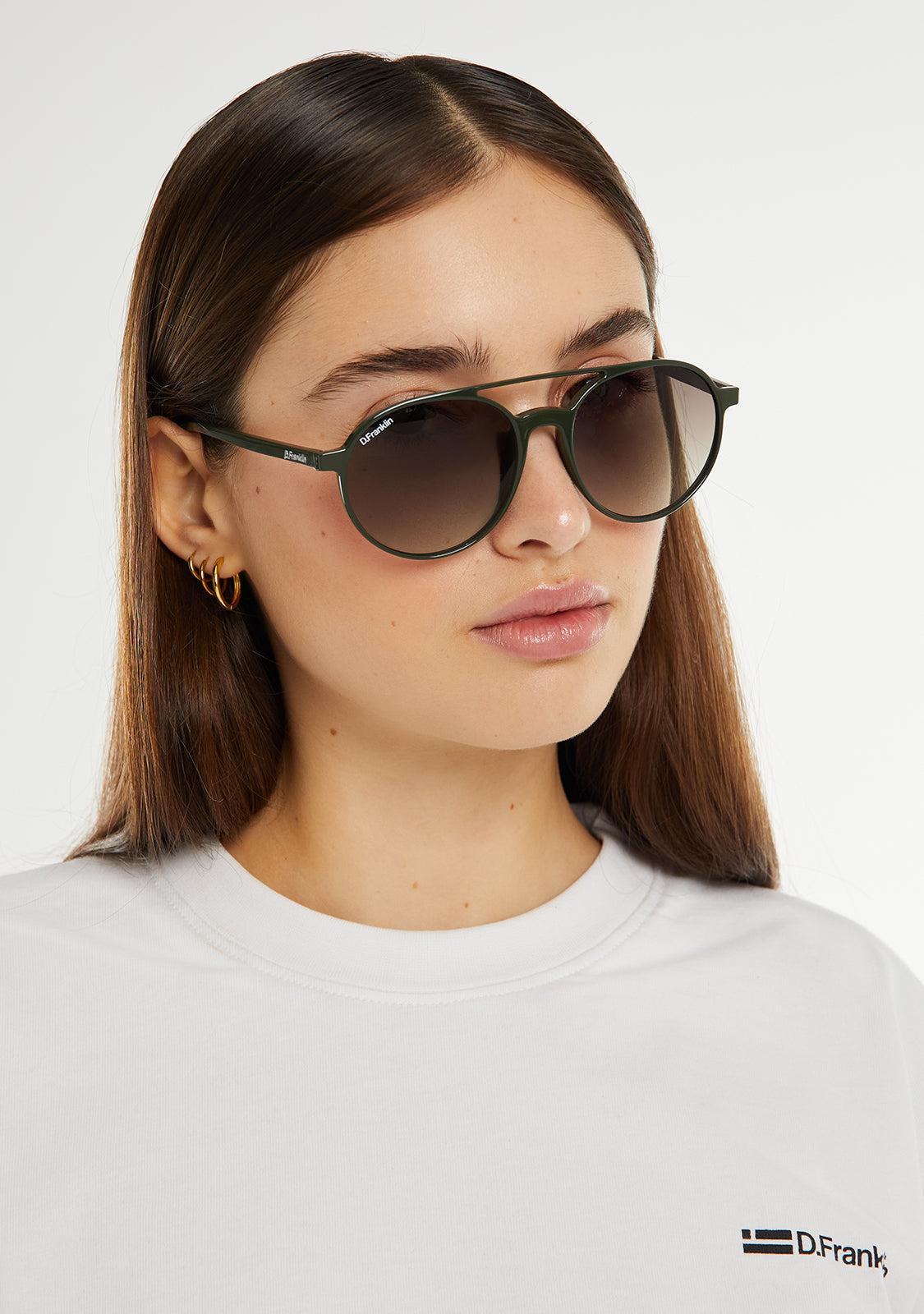 Our America model in brown tones has the distinctive details of the D.Franklin brand, the logo engraved on the temples and the emblem on the lens. The lens width is 54 mm and the front is 139 mm. The side temples have a length of 145 mm.
