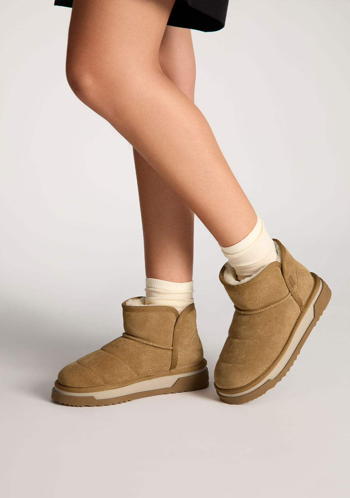The Atlas Bomb Chestnut by D.Franklin offer a comfortable and elegant design in a warm chestnut tone. The 100% cow suede exterior ensures softness and durability, while the synthetic fabric lining and synthetic fabric insole provide a comfort feel throughout the day.