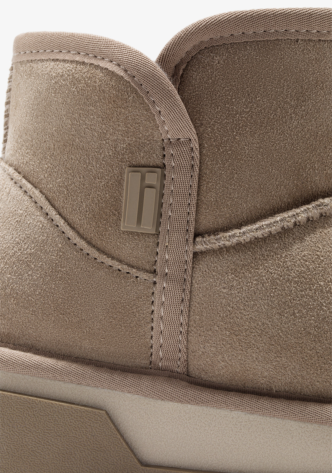 The rubber sole offers stability and grip, while the design in a soft taupe makes these boots perfect for those seeking practical and stylish footwear.