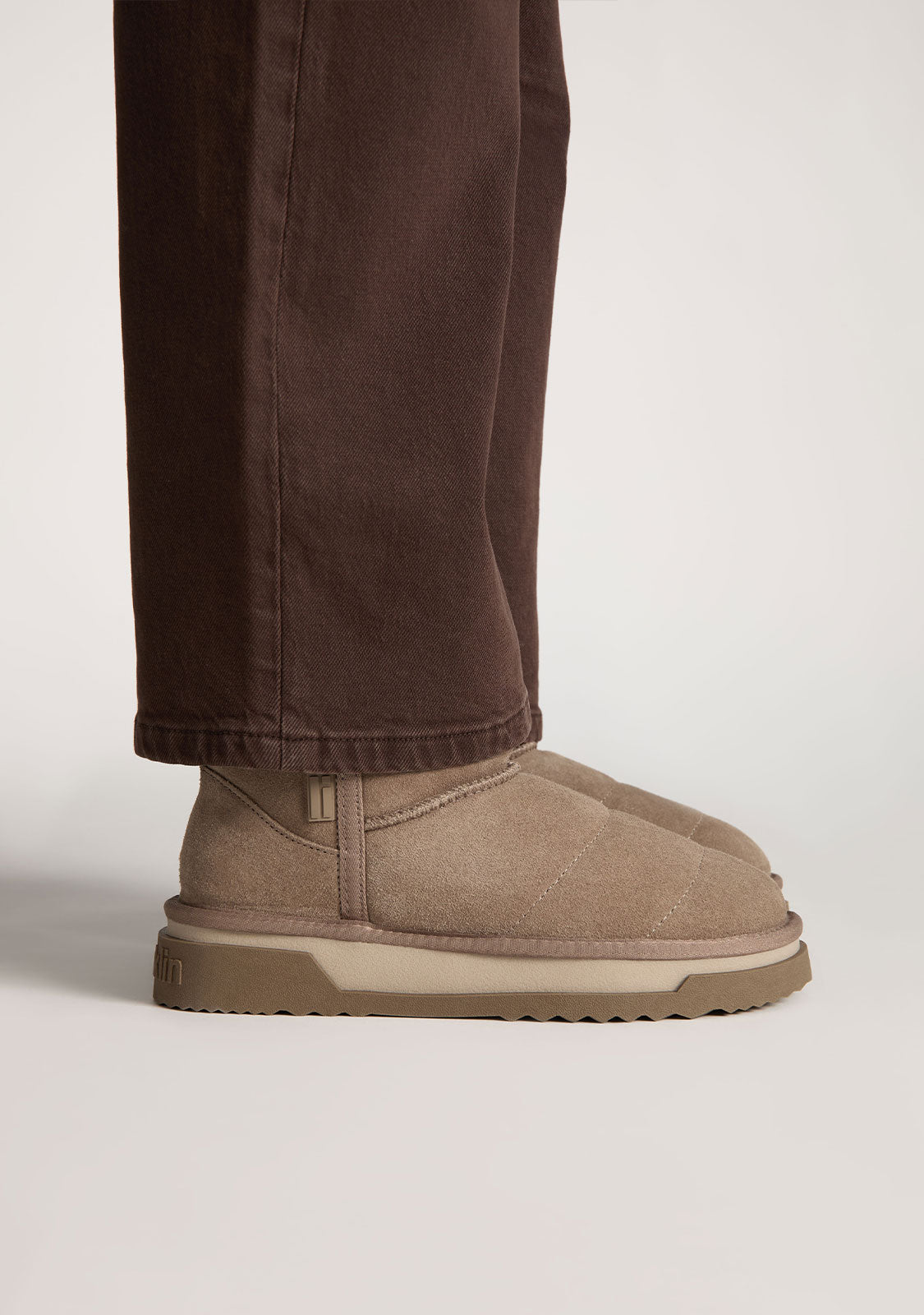 The Atlas Bomb Taupe by D.Franklin are the perfect choice for those seeking comfortable and elegant footwear in a soft taupe tone. The 100% cow suede exterior ensures durability and softness, while the synthetic fabric lining and synthetic fabric insole provide a comfort feel throughout the day.