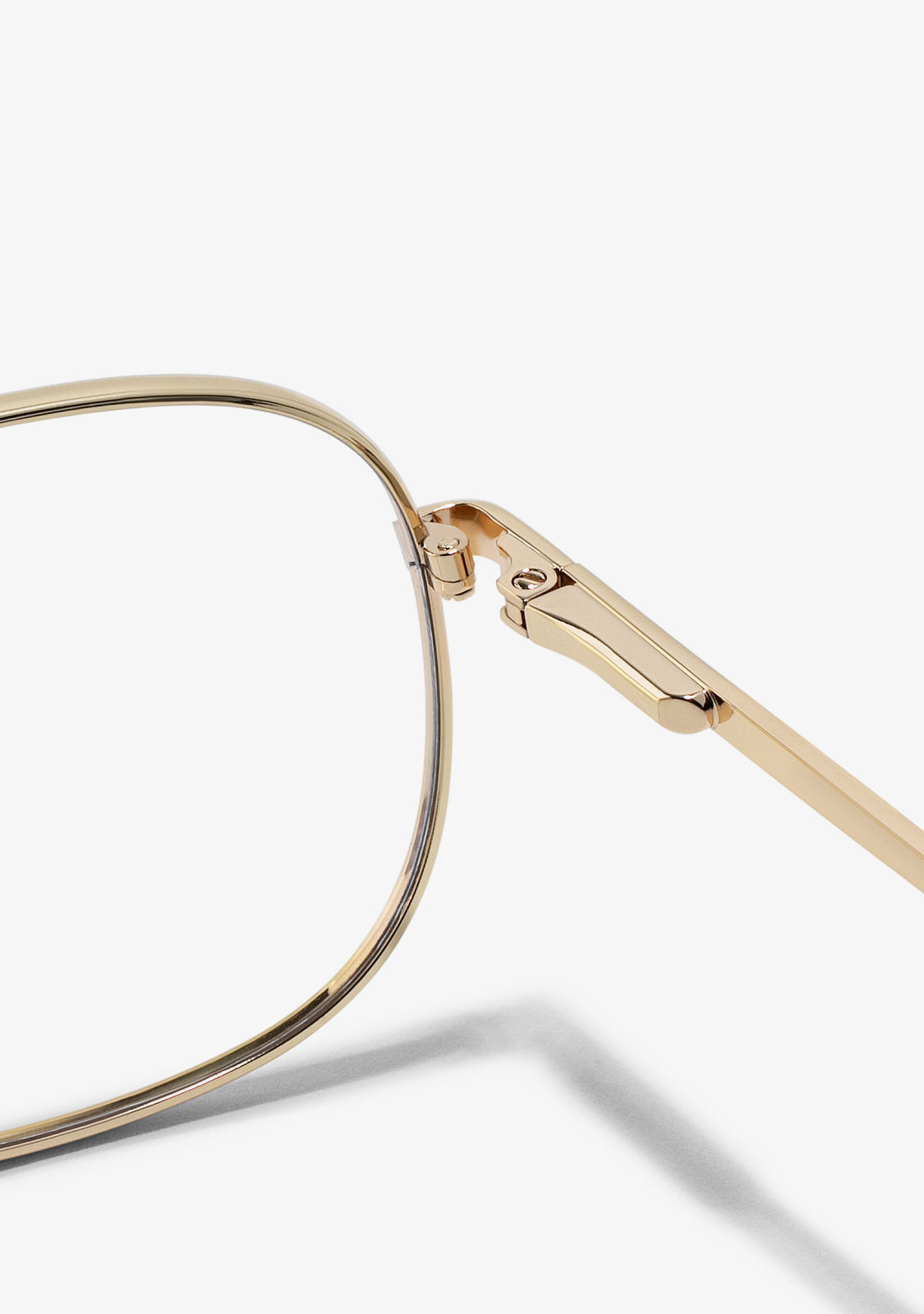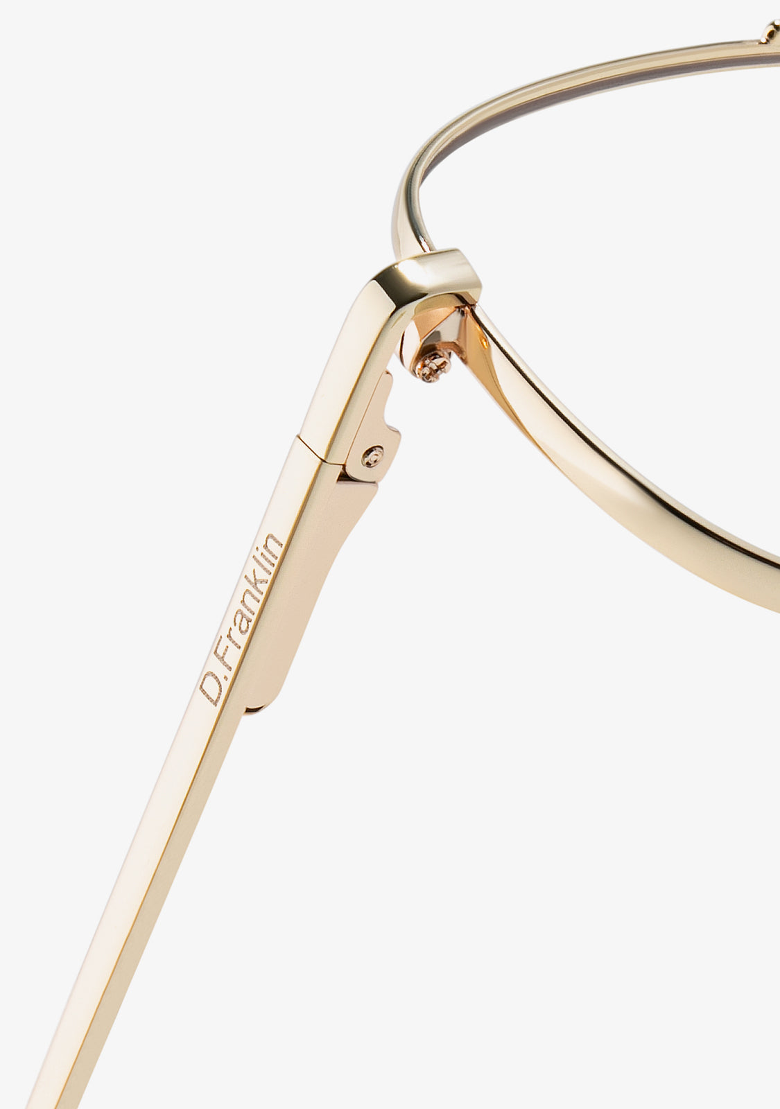A perfect symmetry. Discover the exclusive Aviator Mint Blue Block Gold / Black collection, round glasses with metal-finished frames and inspired by the most popular classics of the 70s.