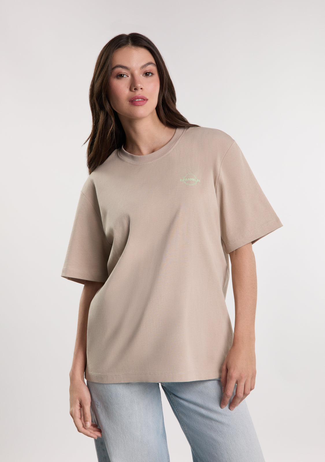 The design of the t-shirt stands out with its print on both the front and the back, adding a modern touch full of personality. Additionally, it features a rubber label on the sleeve, an exclusive detail that makes a difference.