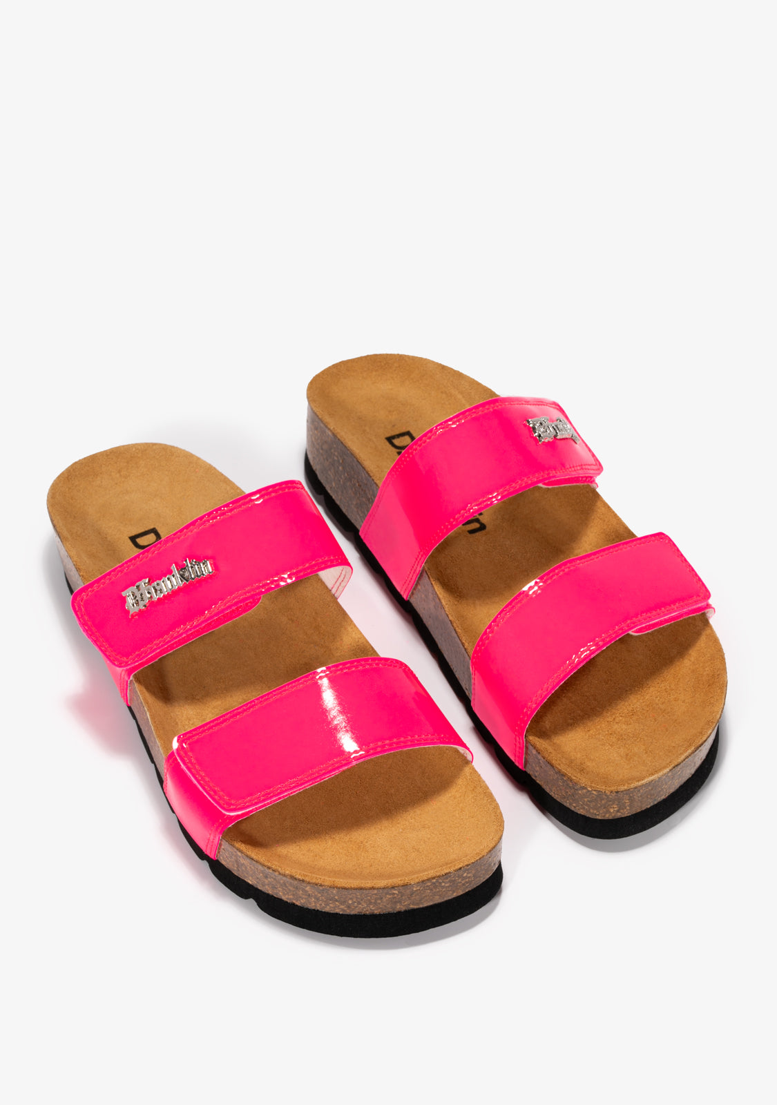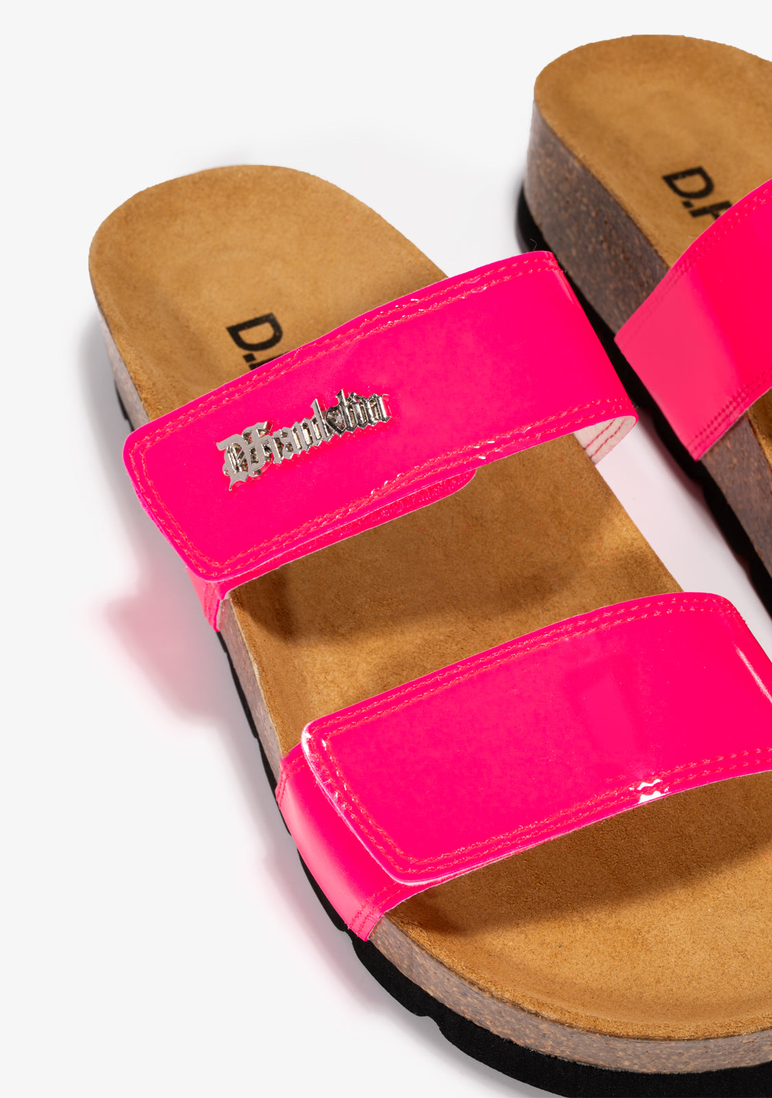BIO sandals with cork TR sole and microfiber sole. Created exclusively for a light tread and exceptional comfort. They have two fuchsia-coloured straps with hook-and-loop fasteners that allow for a greater level of support and fit.