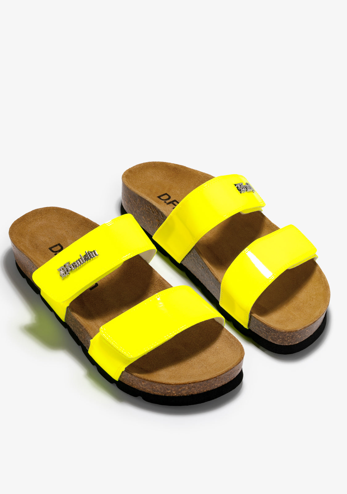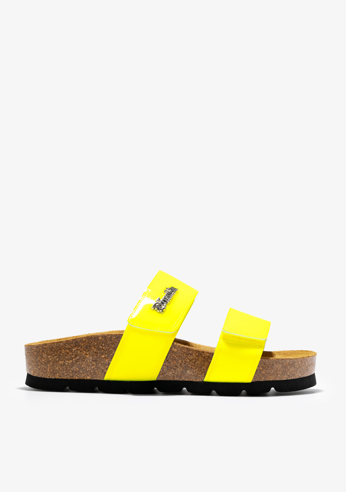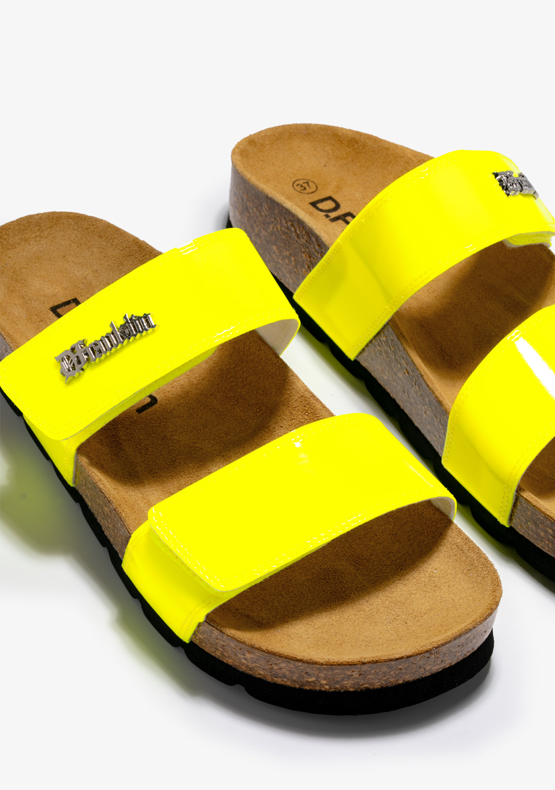 BIO sandals with cork TR sole and microfiber sole. Created exclusively for a light tread and exceptional comfort. They have two yellow straps with hook-and-loop fasteners that allow for a greater level of support and fit.