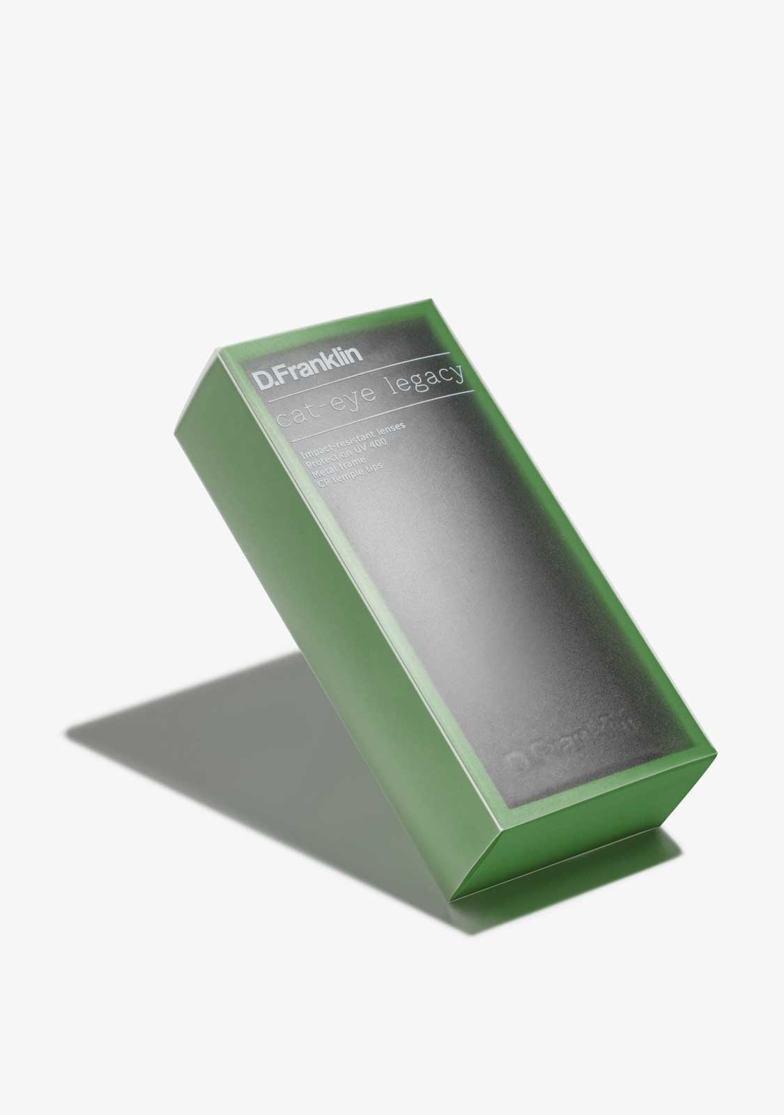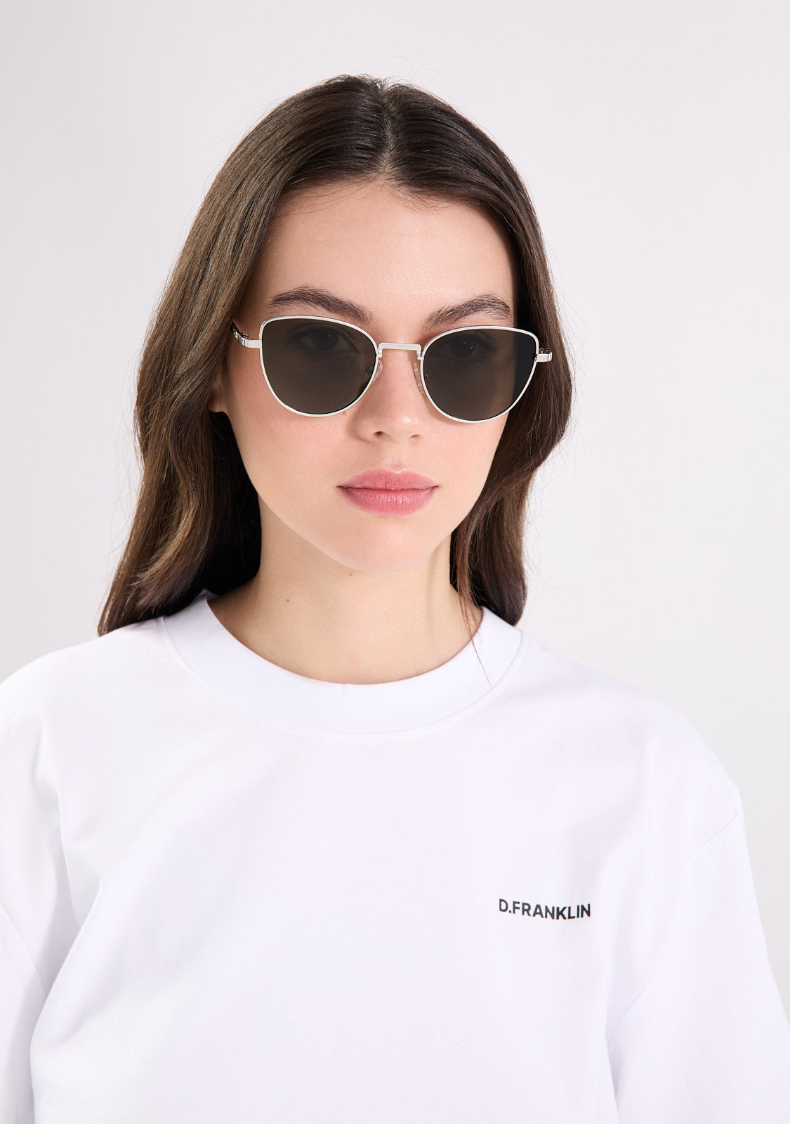 The Cat-Eye Legacy design features a metallic finish with a vintage aesthetic. Its silver-tone frame is paired with dark brown anti-reflective lenses that allow a subtle view through and define the facial features. The front measures 139 mm, and the lens width is 53 mm. The temples are 140 mm long and incorporate our distinctive detailing. A retro yet minimalist piece to frame any outfit.