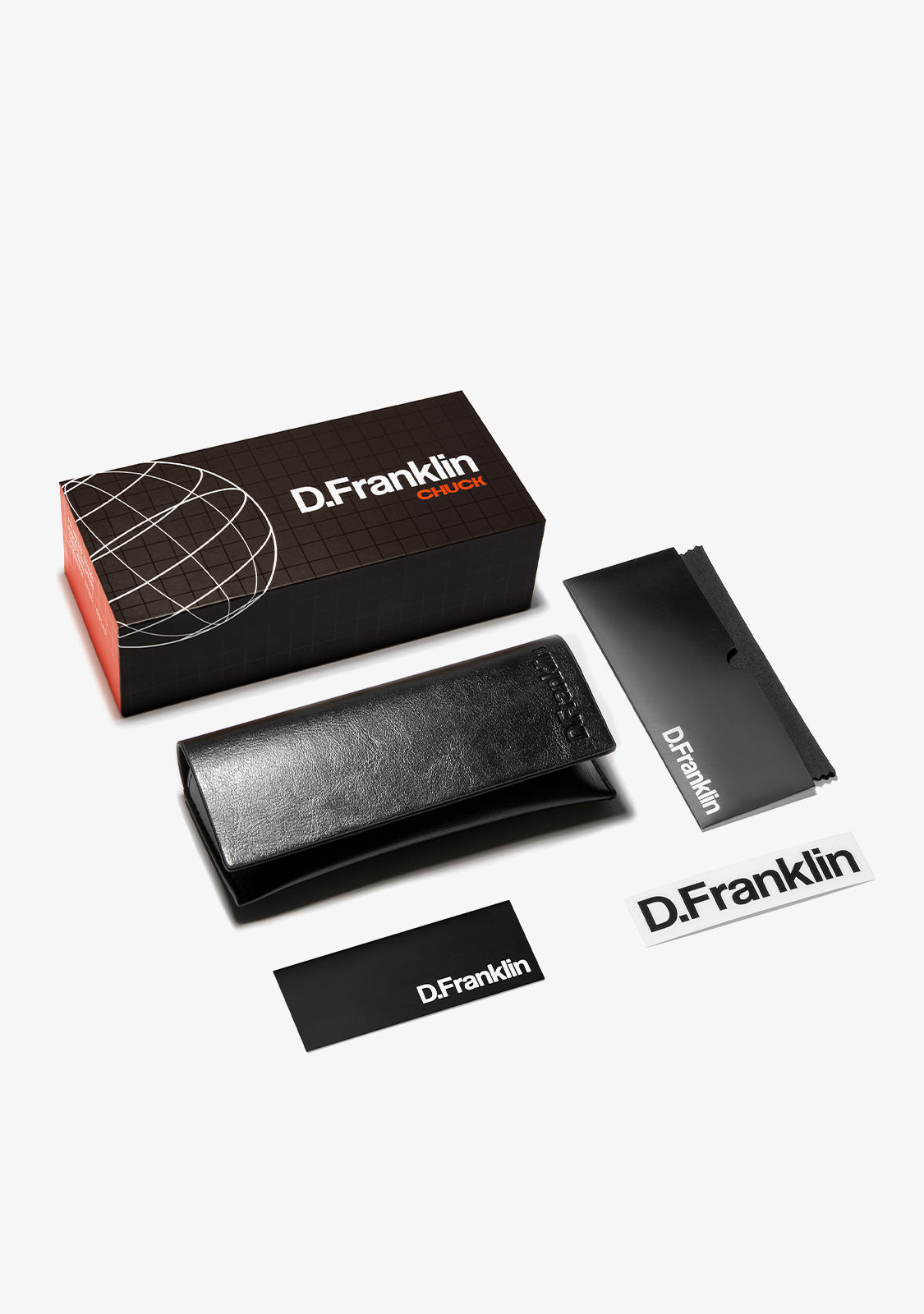 Our gray-toned Chuck features signature D.Franklin details, engraved logo on the temples and emblem on the lens. The lens width is 50mm and the front is 140mm. The side temples have a length of 145 mm which is suitable for all faces.