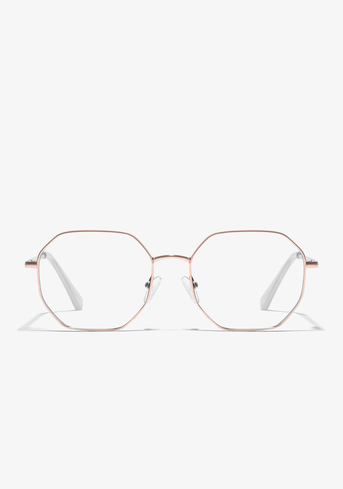 The geometry of a unique style. The Hexagon collection reinterprets the codes of yesteryear with its hexagonal frame and combination of materials. The Classic Hexagon Blue Block White / Gold redesigns a retro silhouette in a hexagonal frame with a comfortable, lightweight frame in gold.