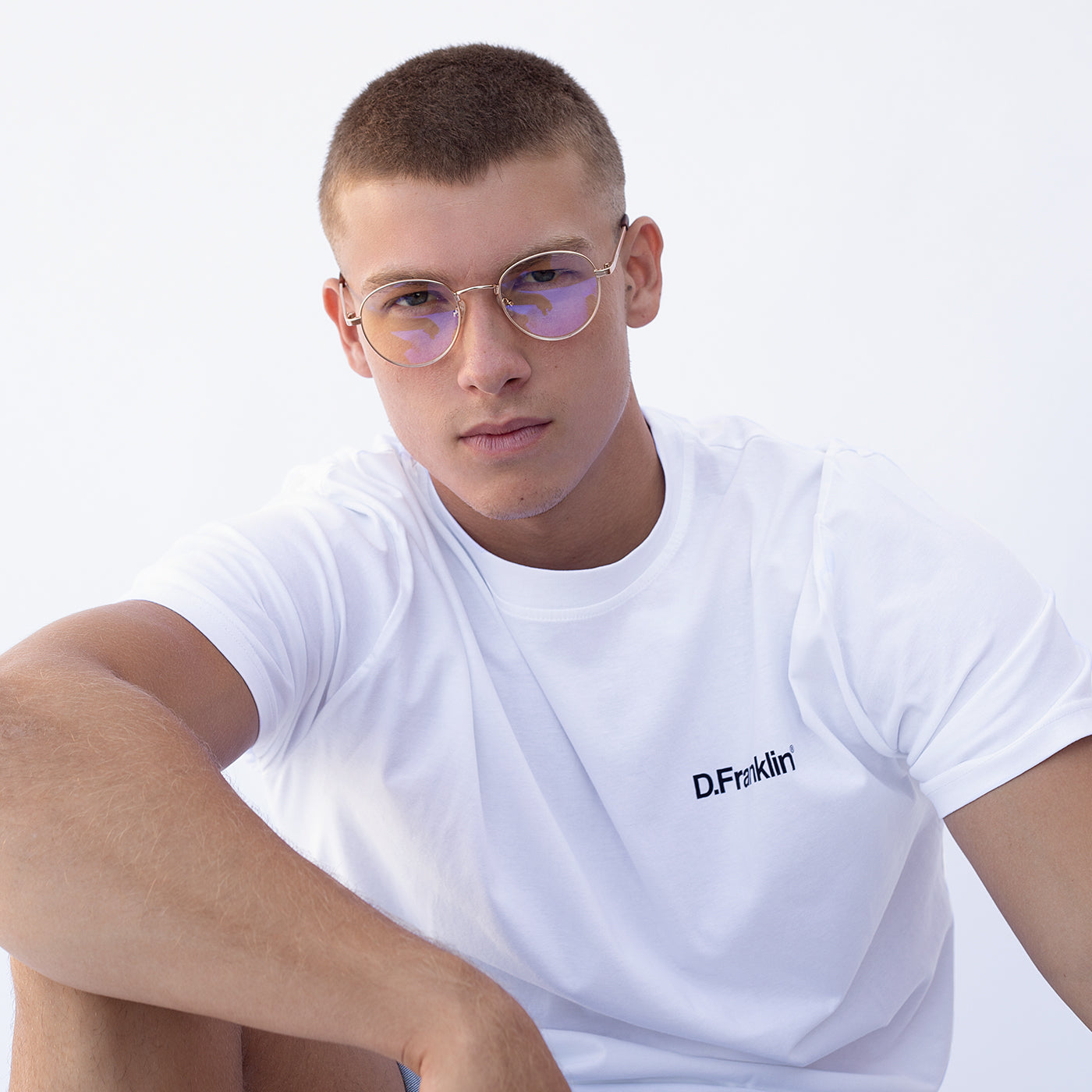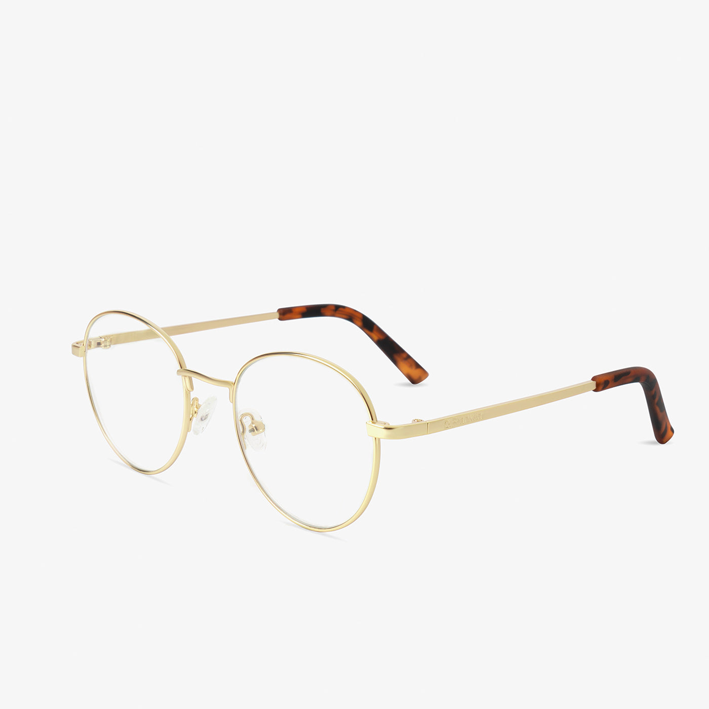 It stands out through its simplicity. Discover the Classic Round collection, round glasses with a metallic frame that renew the essence of the best-selling designs of the past. The Classic Round Blue Block / Gold mixes quality and simplicity in soft tones and incomparable style.