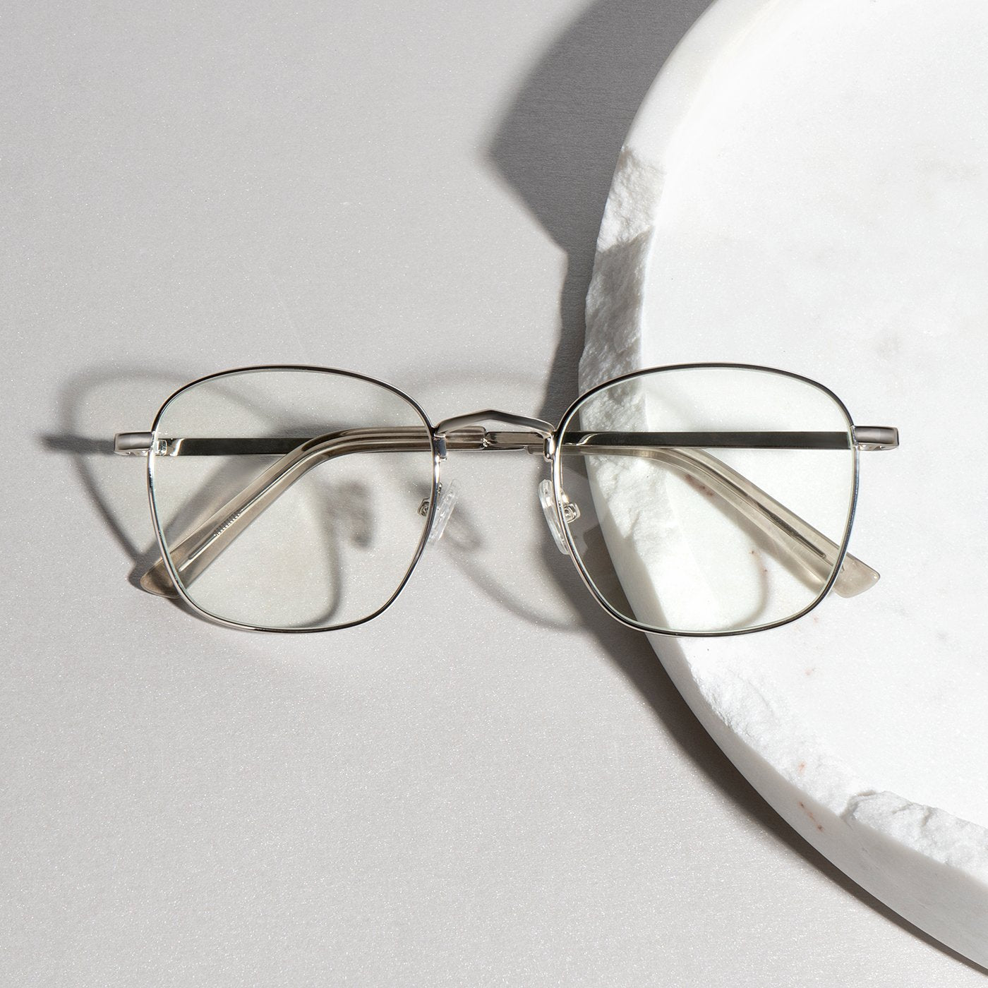 A perfect symmetry. Discover the exclusive Classic Square Blue Block / Silver collection, square glasses with metal-finished frames and inspired by the most popular classics of the 70s.