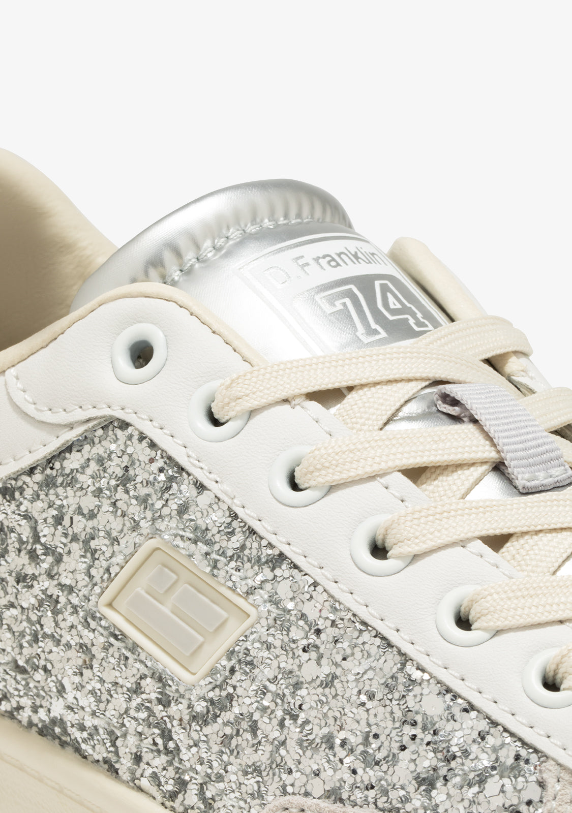 Shine with style every step of the way with the Court Basic Glitter Silver trainers by D.Franklin, crafted for those who want to stand out. This model features a silver finish with glitter accents, adding a bold and sophisticated touch to your outfits.