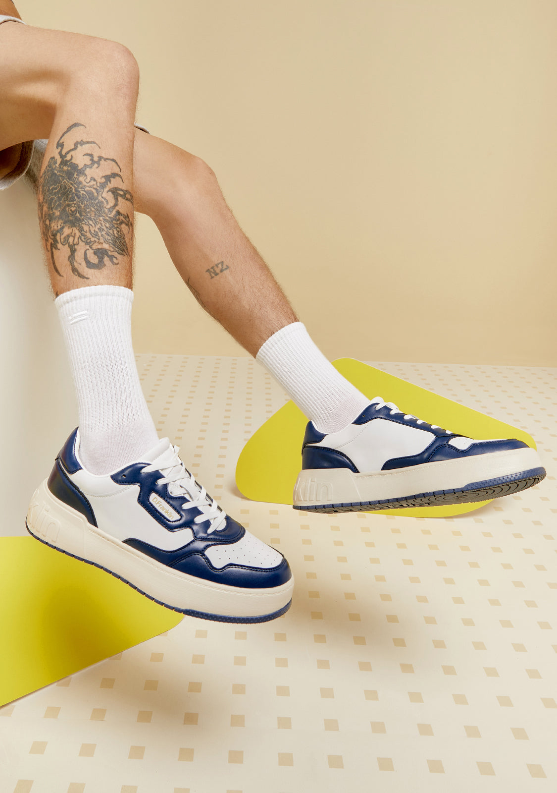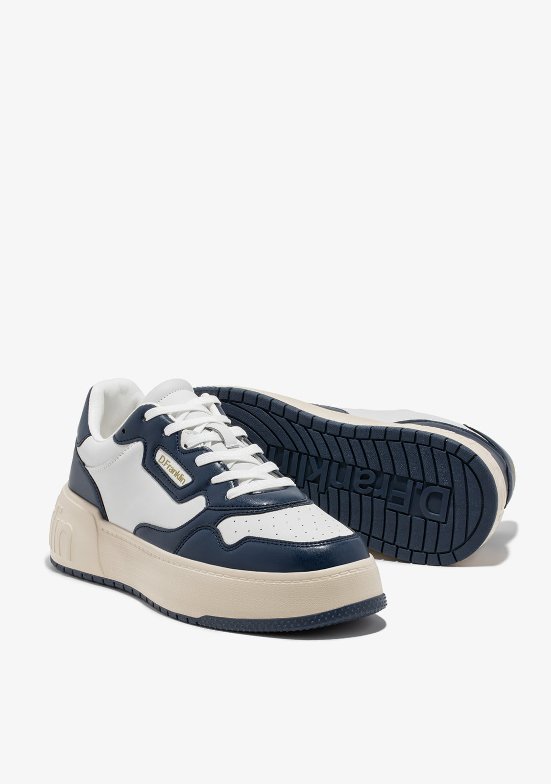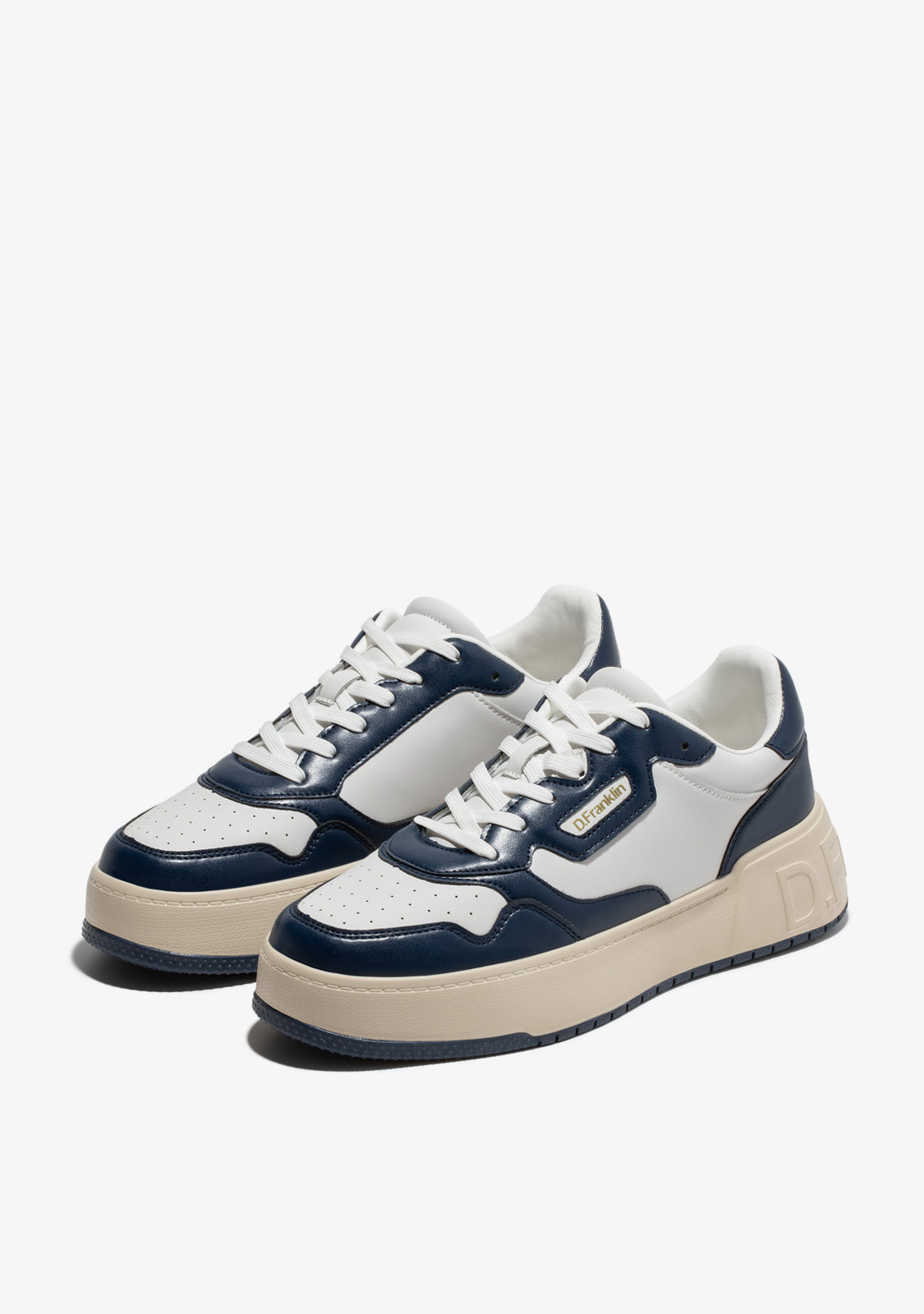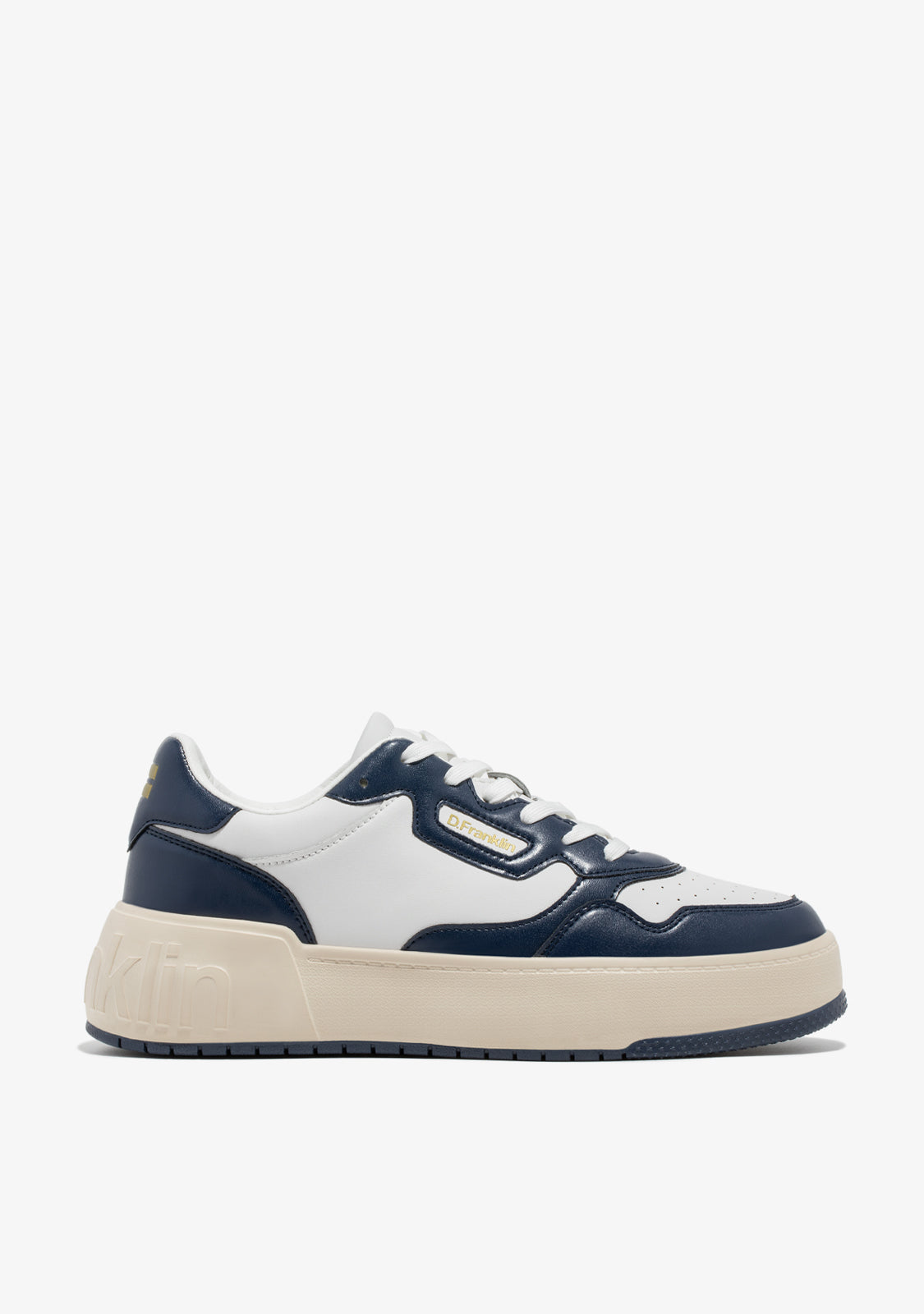 The white Court D.Franklin trainers are crafted with navy detailing and cotton laces. The contrasting sole features an embossed logo on both the heel and sole. They have 4cm of height and a phylon sole for lightweight cushioning.