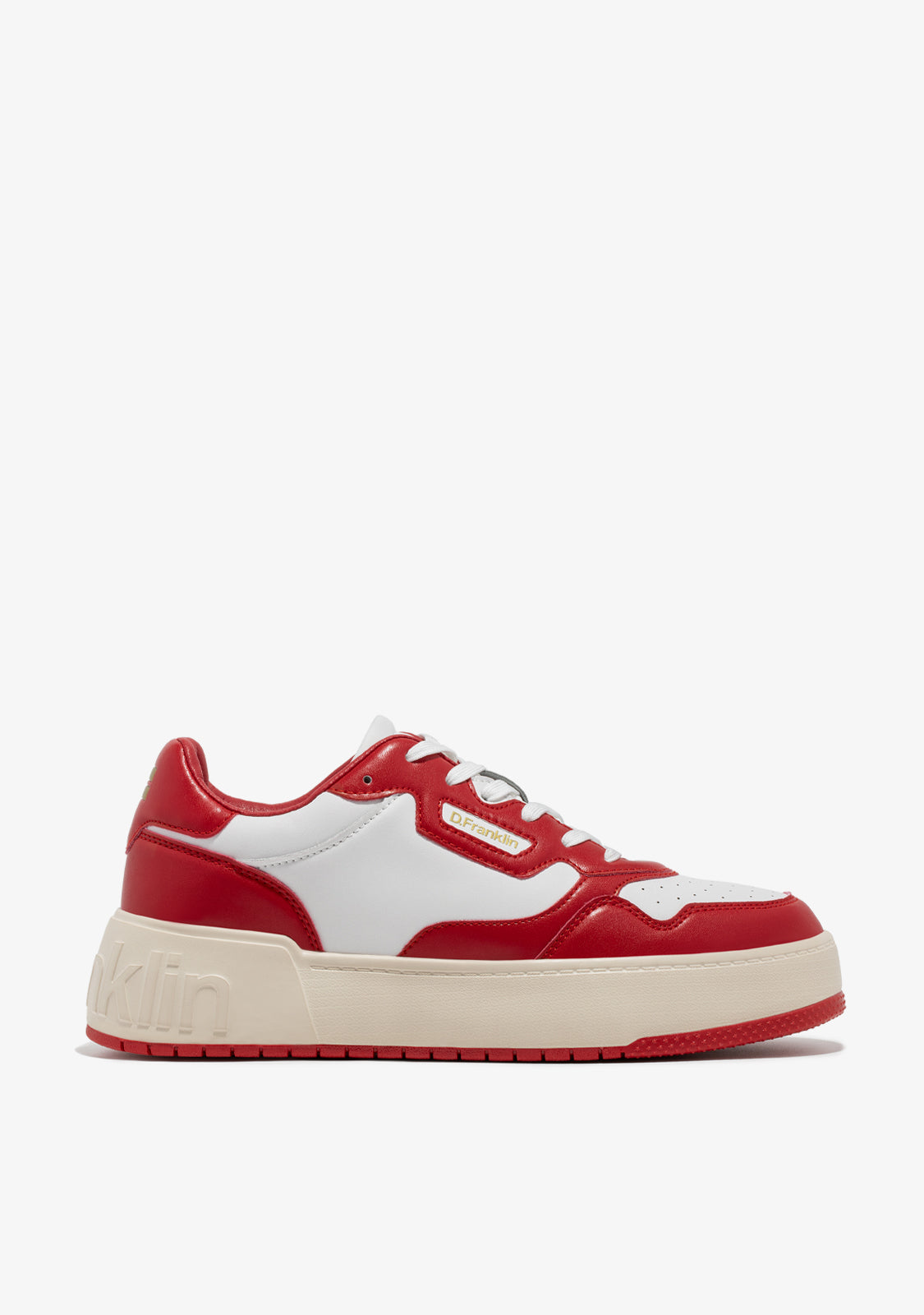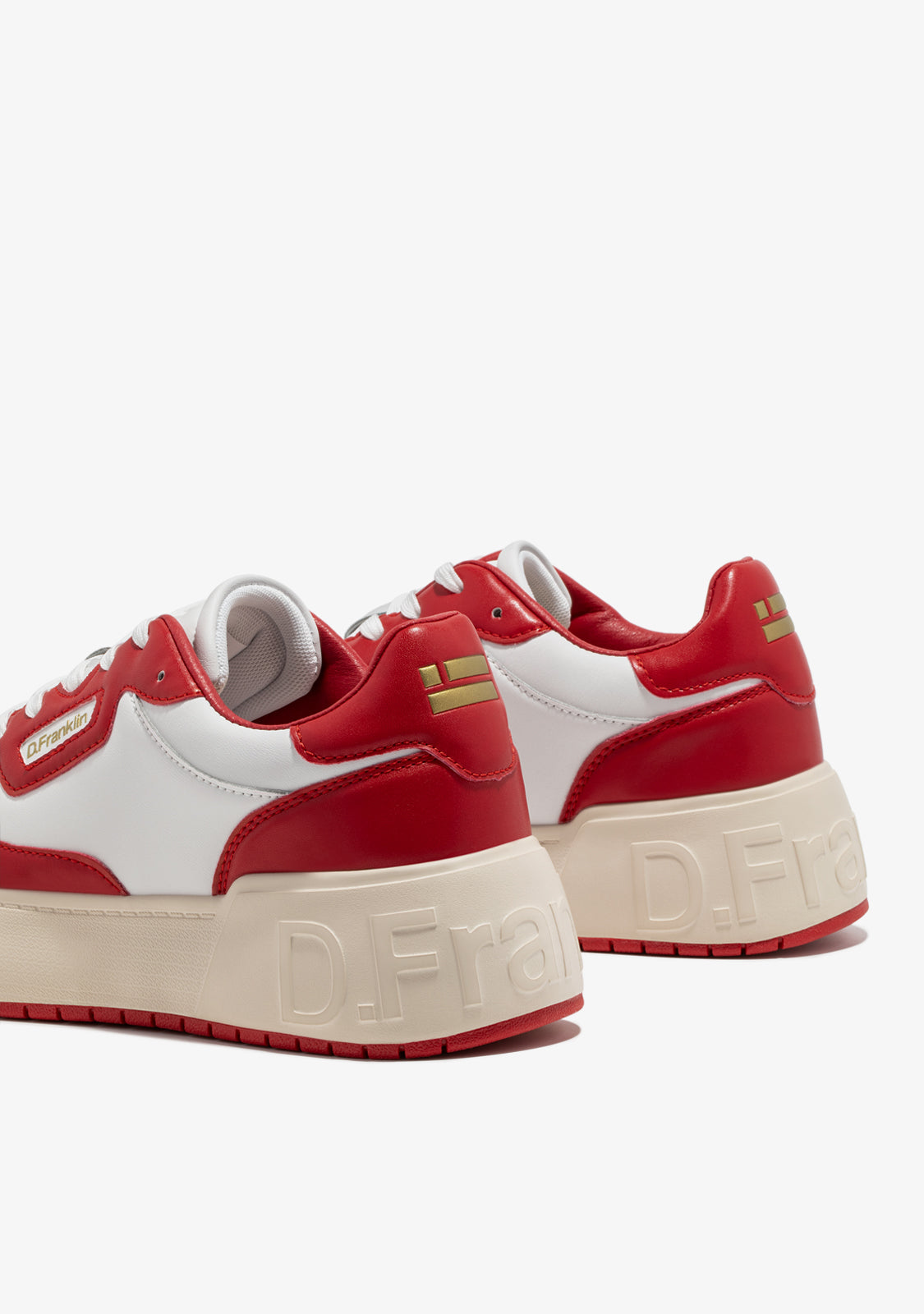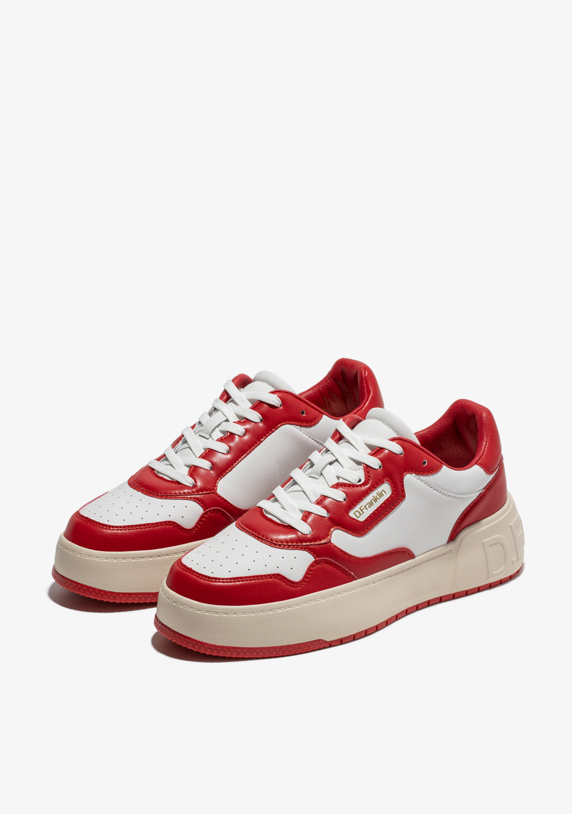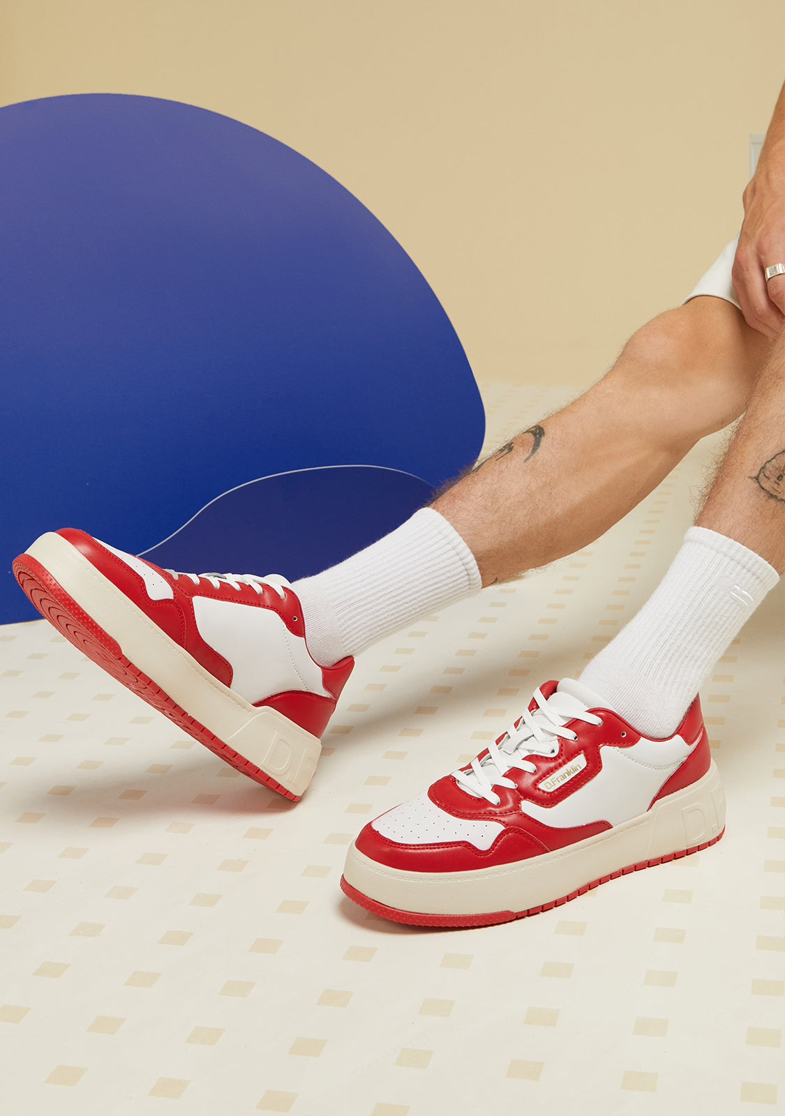 The white Court D.Franklin trainers are crafted with red detailing and cotton laces. The contrasting sole features an embossed logo on both the heel and sole. They have 4cm of height and a phylon sole for lightweight cushioning.