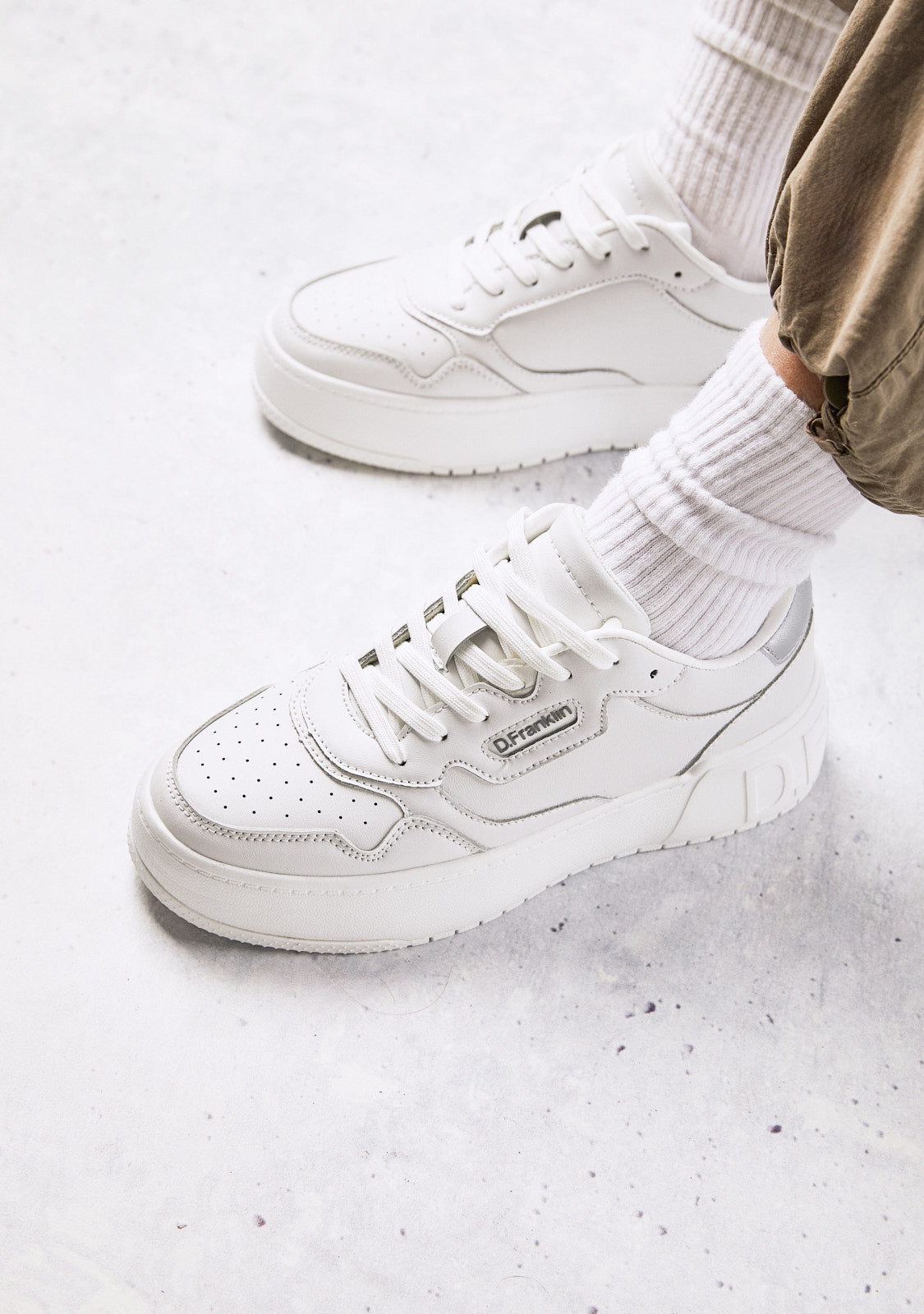 Minimal trainers with a sporty inspiration. Our iconography's iconic design transcends the court and hits the streets. Connect your D.Franklin aesthetic with a retro-cut emblem and simple detailing.