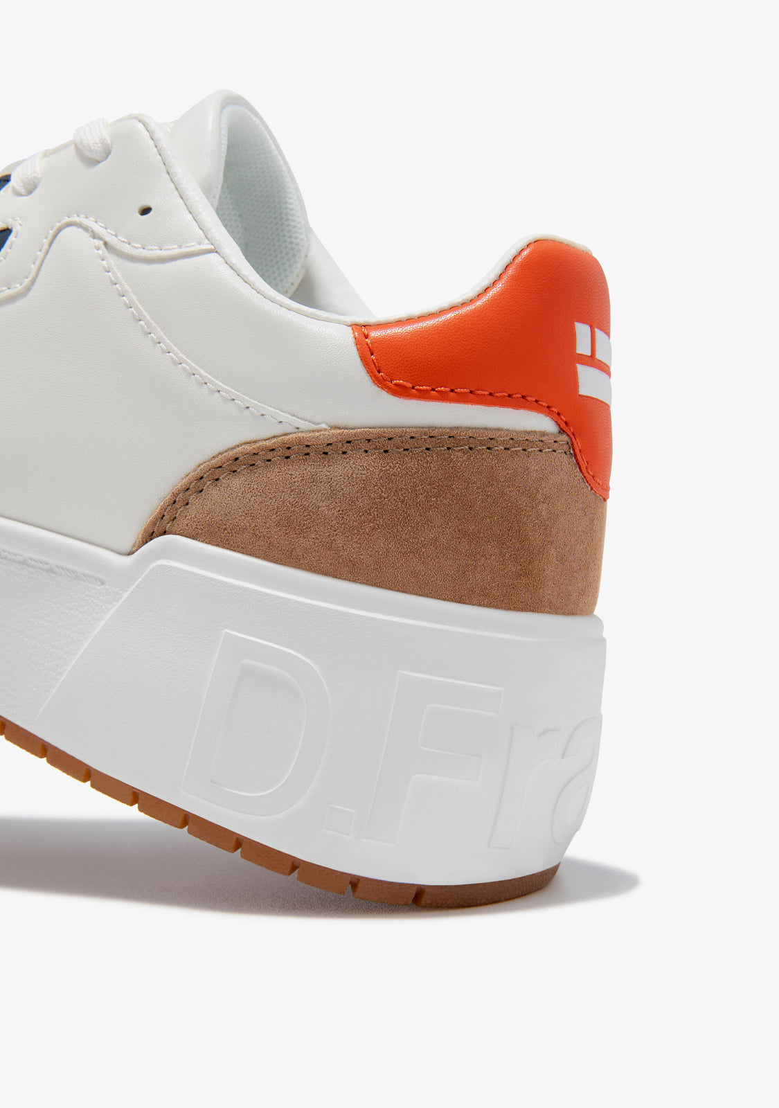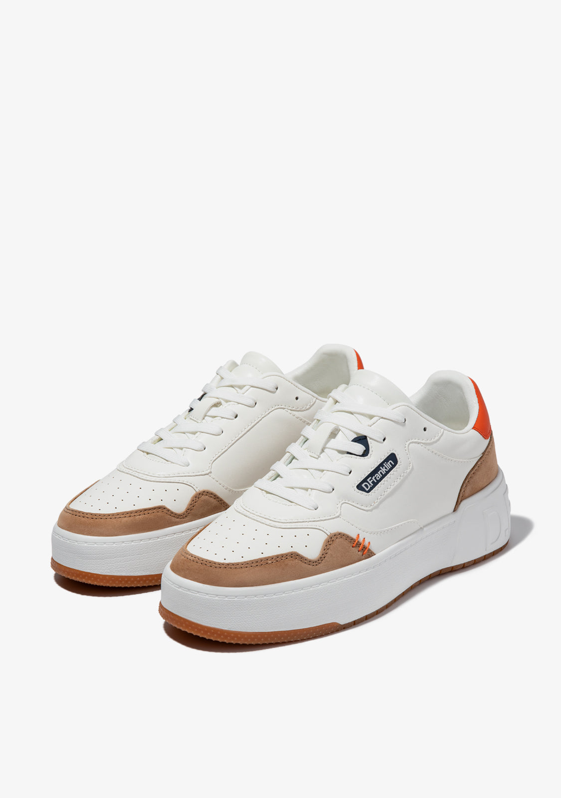 Our Court model is crafted with navy, orange and brown detailing. As well as matching embroidery with triple stitching. The sole features an embossed logo on the heel, sole and side. With 4 cm height and phylon sole for lightweight cushioning. In addition, the insole is anatomical and removable.