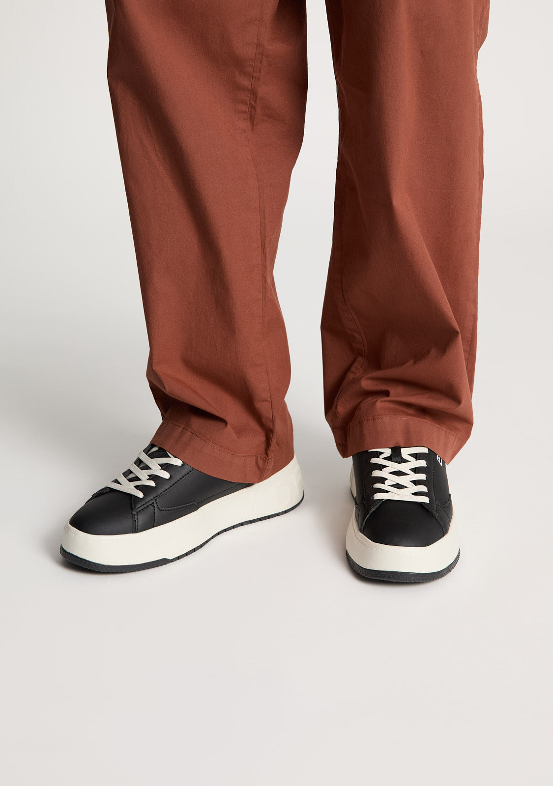 The Court trainers are crafted in a black finish. They have a contrasting sole with embossed logo on both the heel and sole. It also has the flag embroidered on the side. With 4cm in height and a phylon sole for lightweight cushioning. The anatomical footbed is also removable.