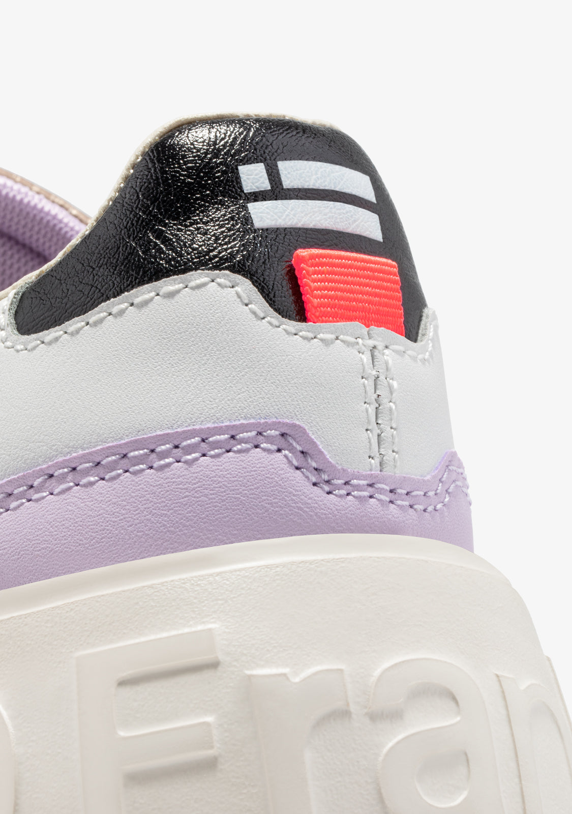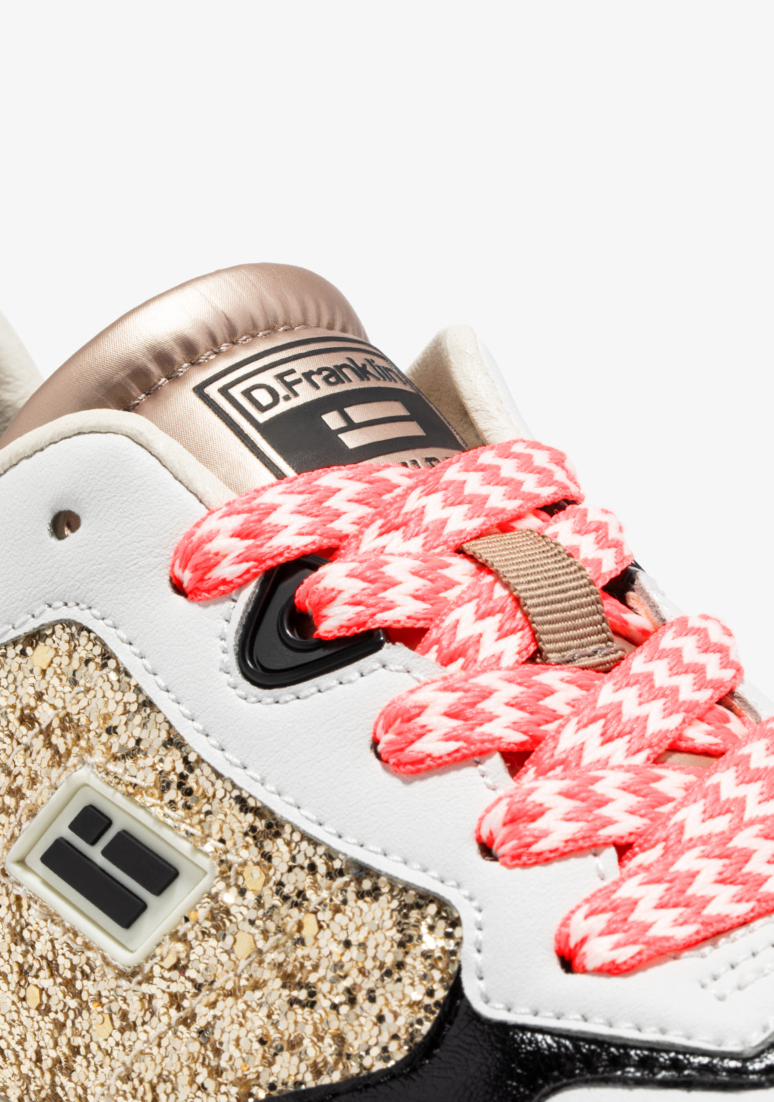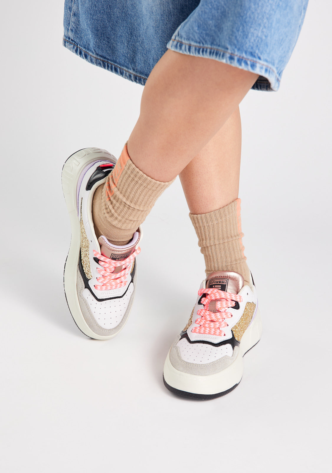 The Court D.Franklin model is made with pastel tones, glitter and printed laces. They have a contrasting black sole with the logo embossed on both the heel and the sole. The black flag is also embossed on the side. With 4cm in height and a phylon sole for lightweight cushioning. The anatomical footbed is also removable.