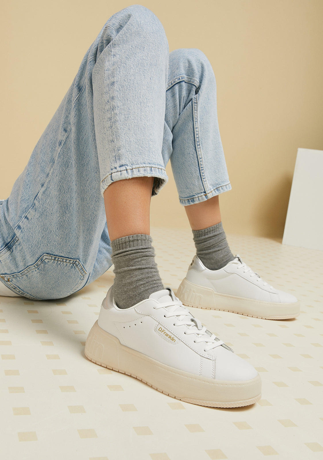 Minimal trainers with a sporty inspiration. Our iconography's iconic design transcends the court and hits the streets. Connect your D.Franklin aesthetic with a retro-cut emblem and simple detailing.