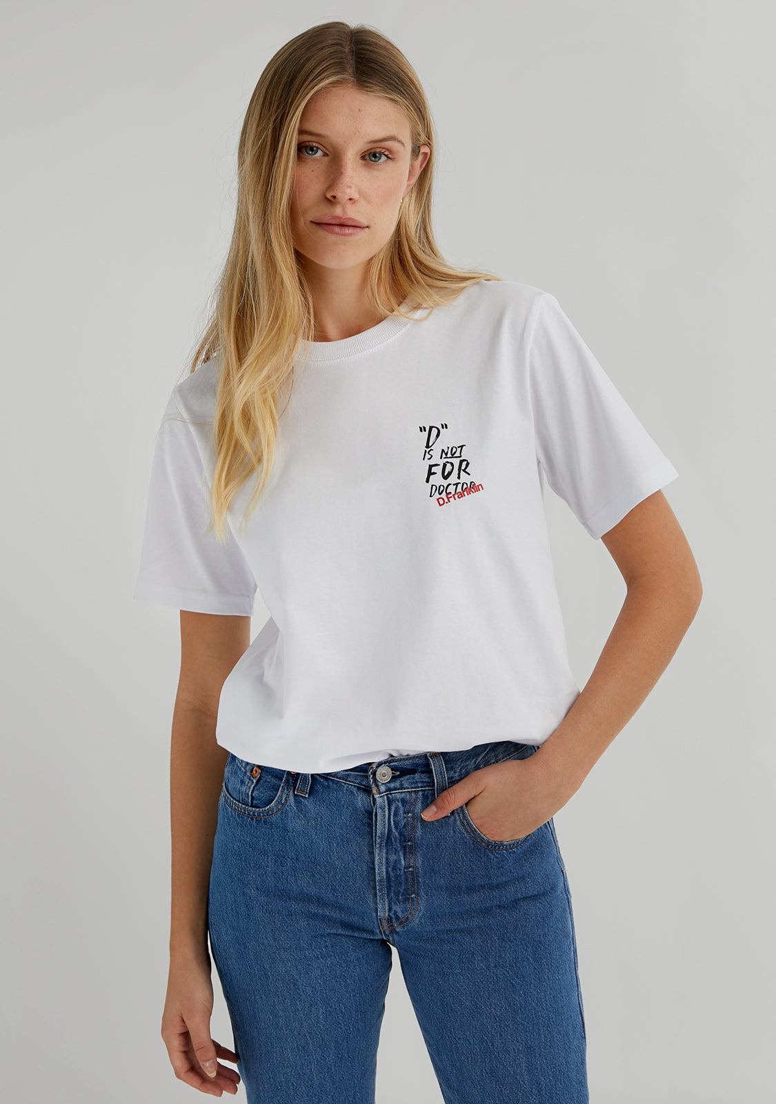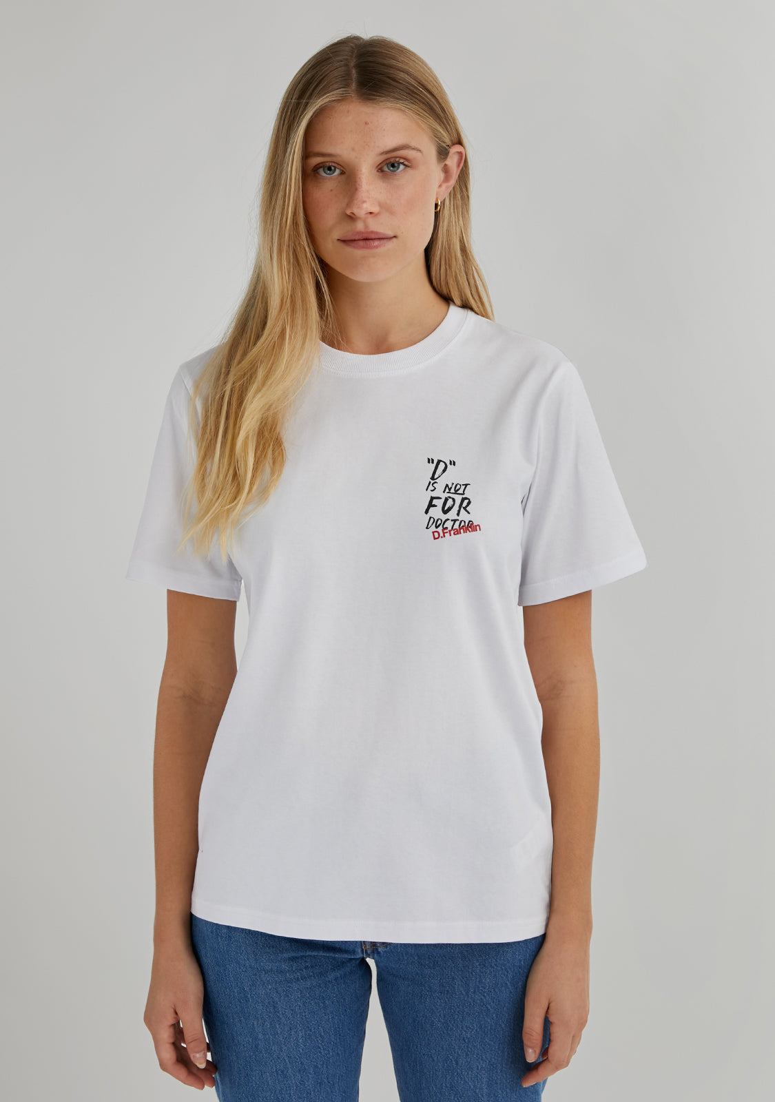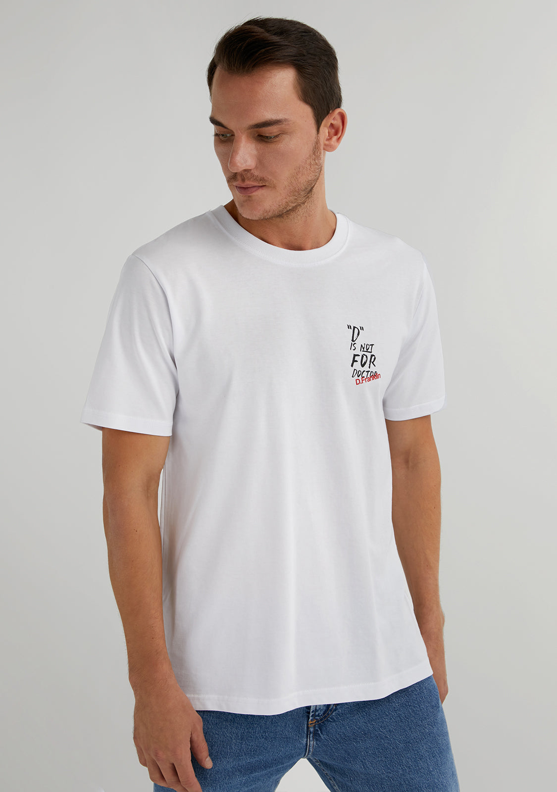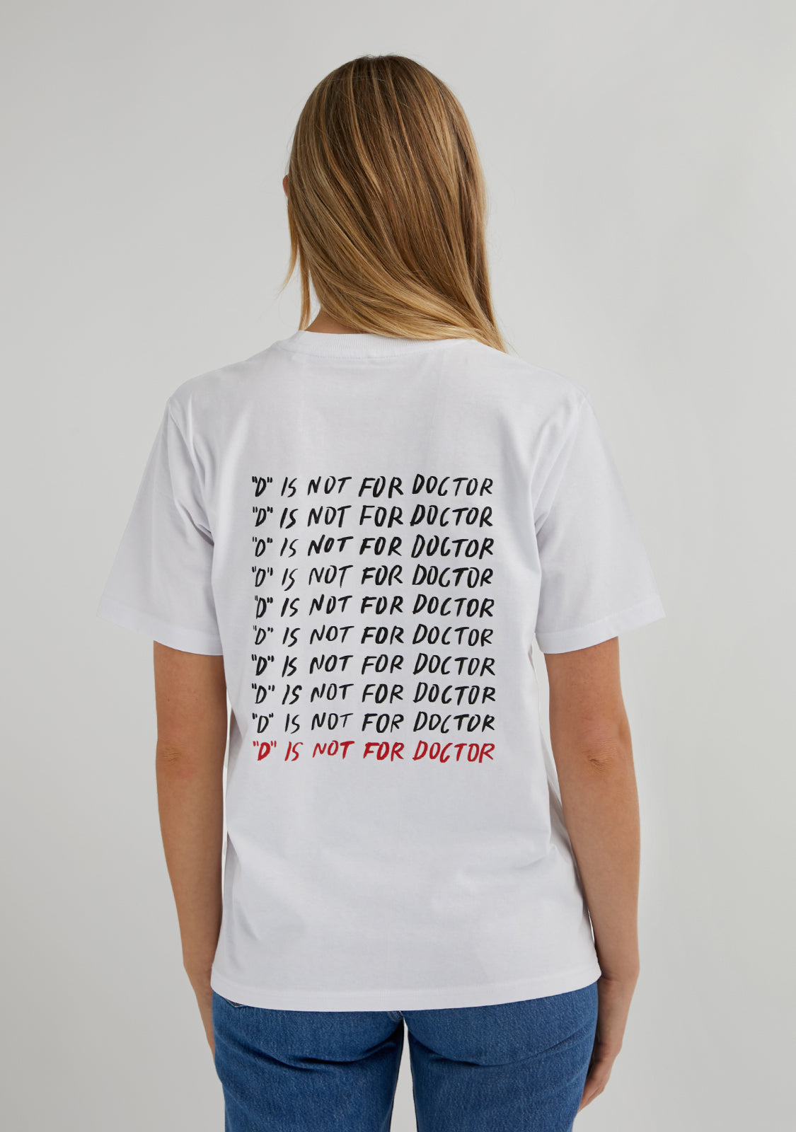 Join the D.Franklin style with its latest addition D Is Not For Doctor T-Shirt White. Made with the best materials, which gives it great breathability, elasticity and comfort. Stitched sleeves. Ribbed neck. White finish combined with the message both front and rear screen-printed.