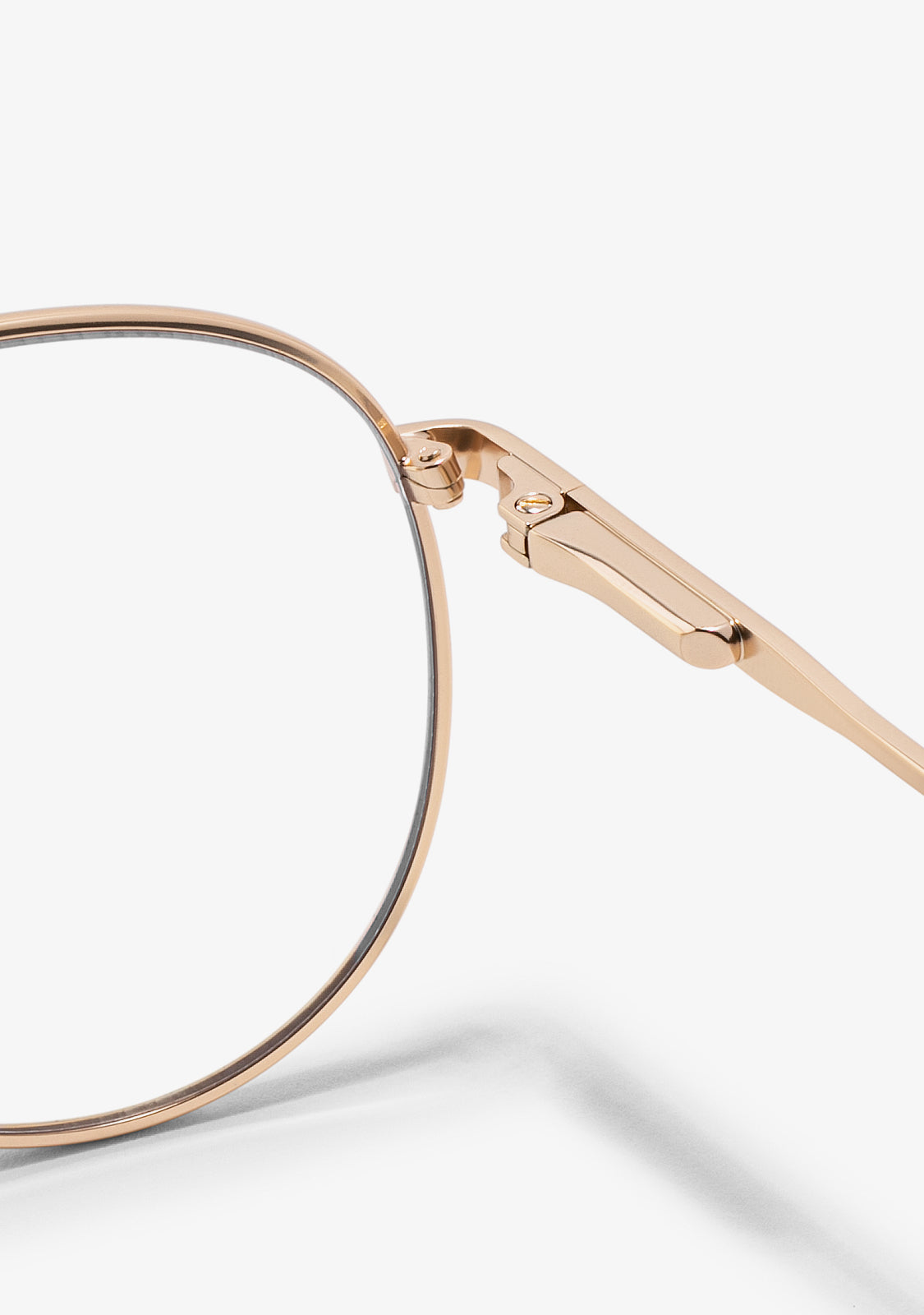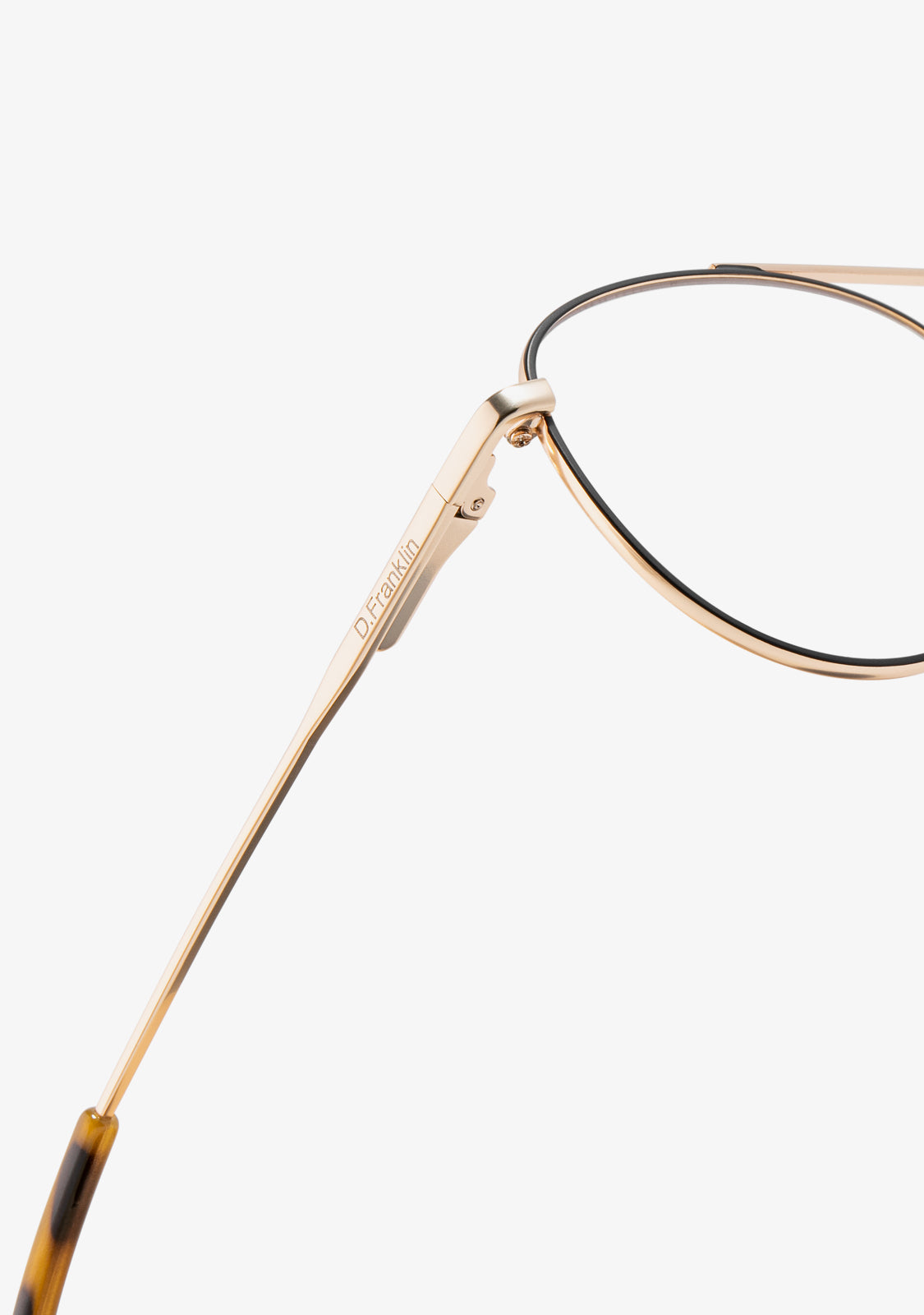 A perfect symmetry. Discover the exclusive Aviator Delta Blue Block Black / Carey collection, round glasses with metal-finished frames and inspired by the most popular classics of the 70s.