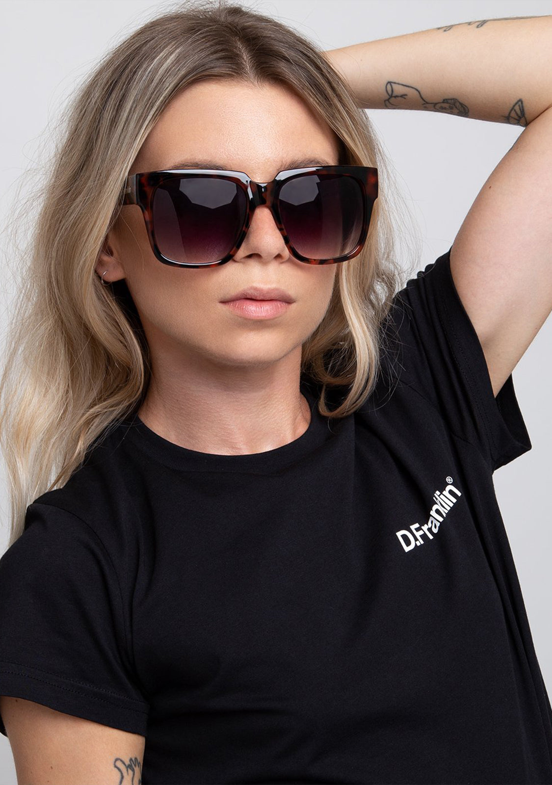 Sunglasses with an extralarge frame and a trendy seasonal style. This is D.Franklin Dunar Demi / Black model. A daring and rule-breaking design that suits the different textures and effects of its characteristic squared frame.
