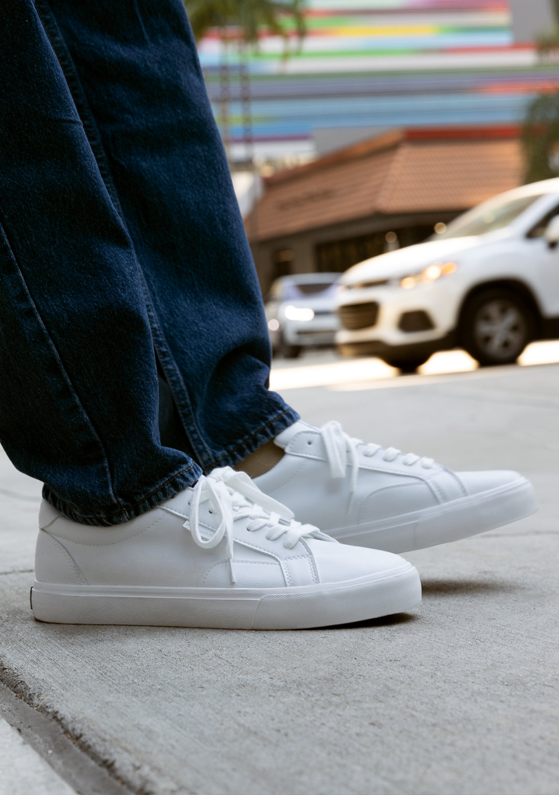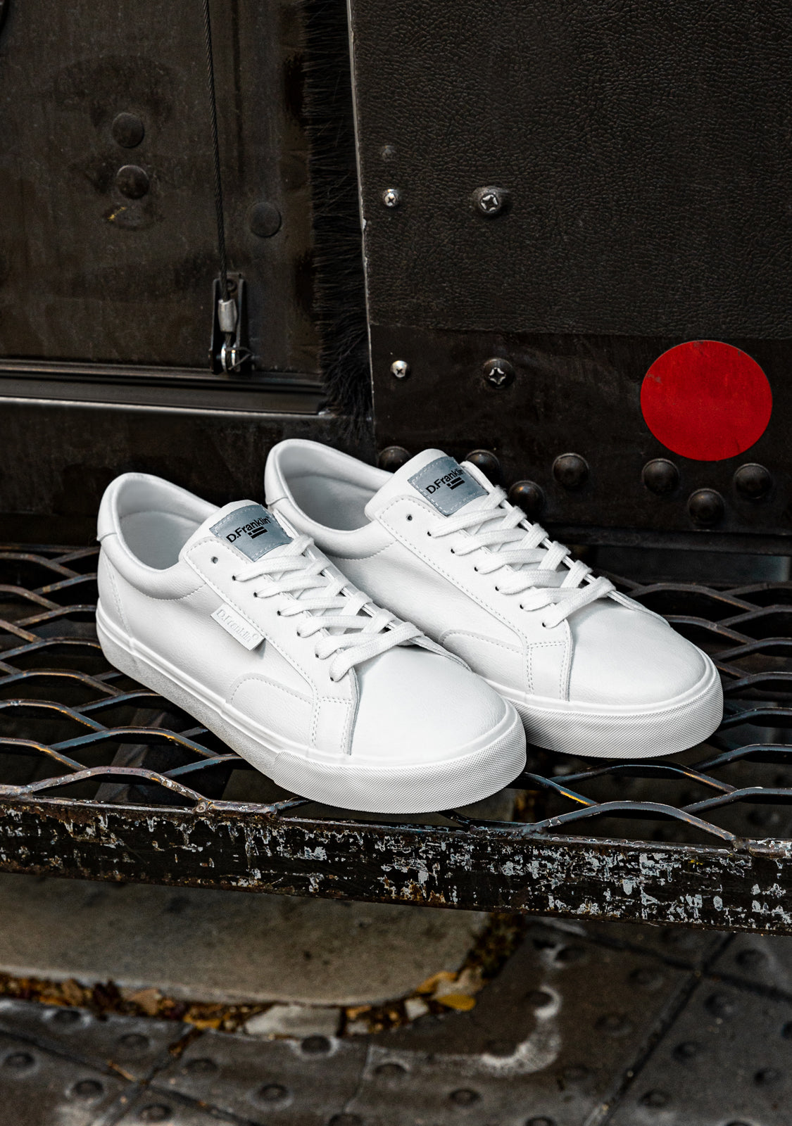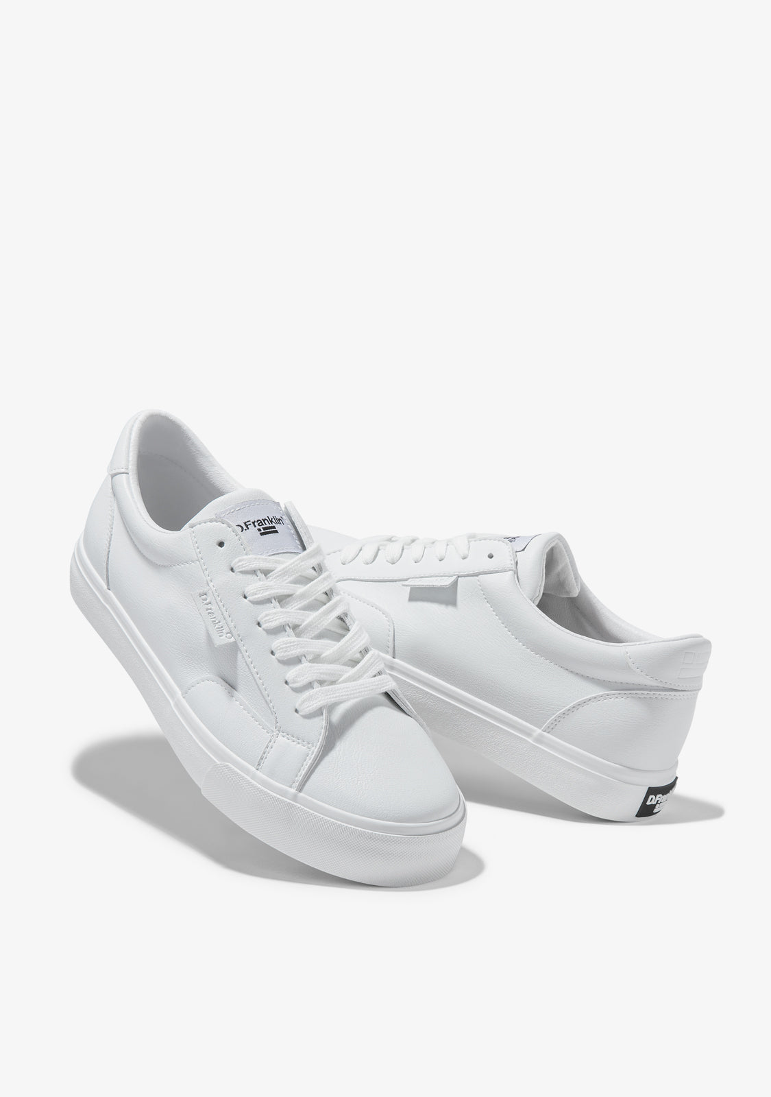 Low-cut trainer inspired by the skateboarding scene in Venice Beach, Los Angeles. Constructed from synthetic leather and split leather in white with D.Franklin logo on the side. Embossed emblem on the heel. Cotton laces.