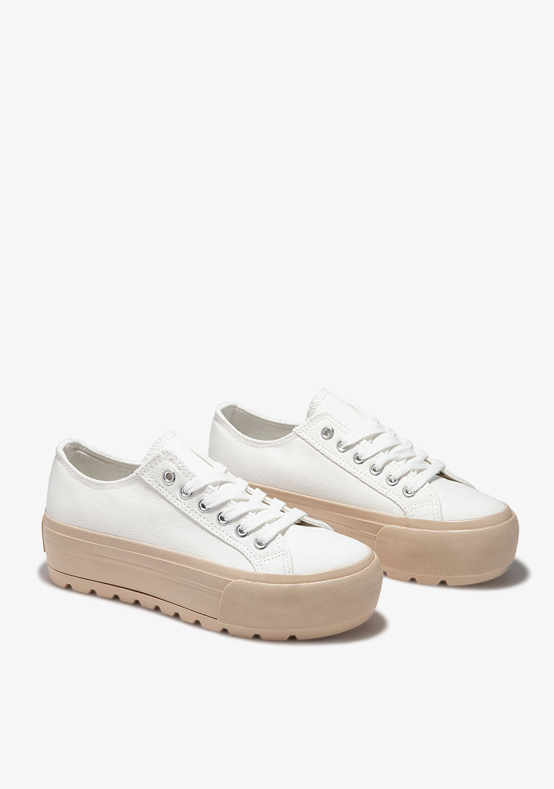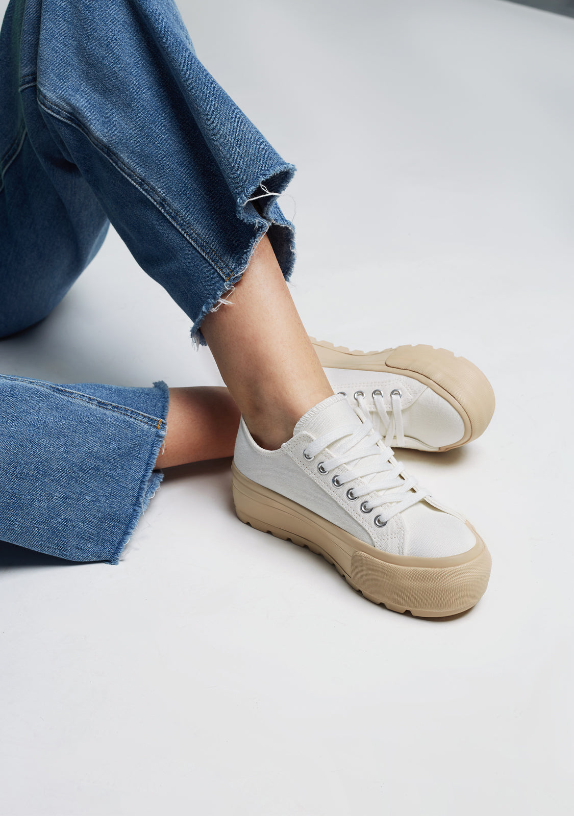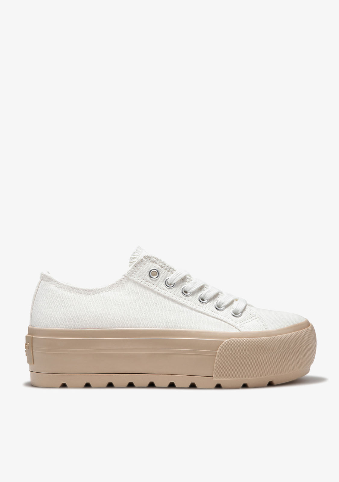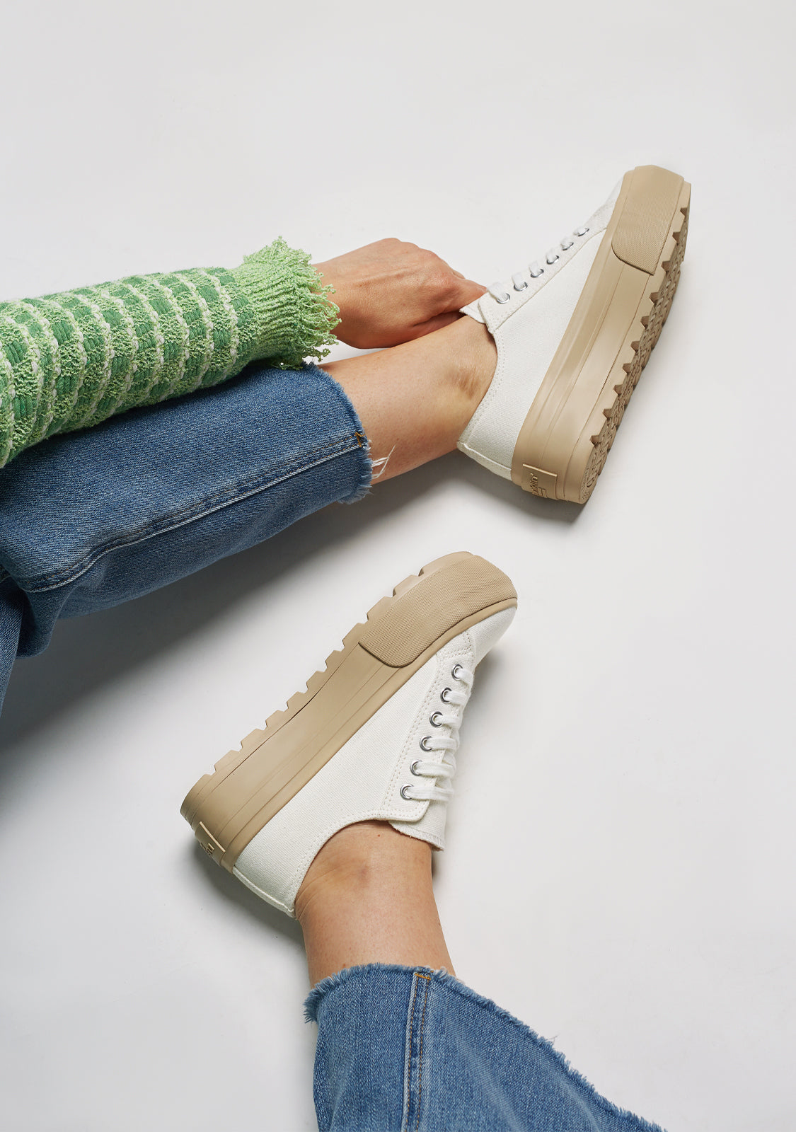 An unmistakable icon. Eclipse is the collection that renews urban sensations in sneakers that brings the most popular combinations and textures. The Eclipse Recycled White V.2 are made of canvas providing maximum lightness. Finished in white, they combine simplicity with the soft brown color of their platform extra-light sole, becoming a basic for any style. The time is now, leave your mark on the way.