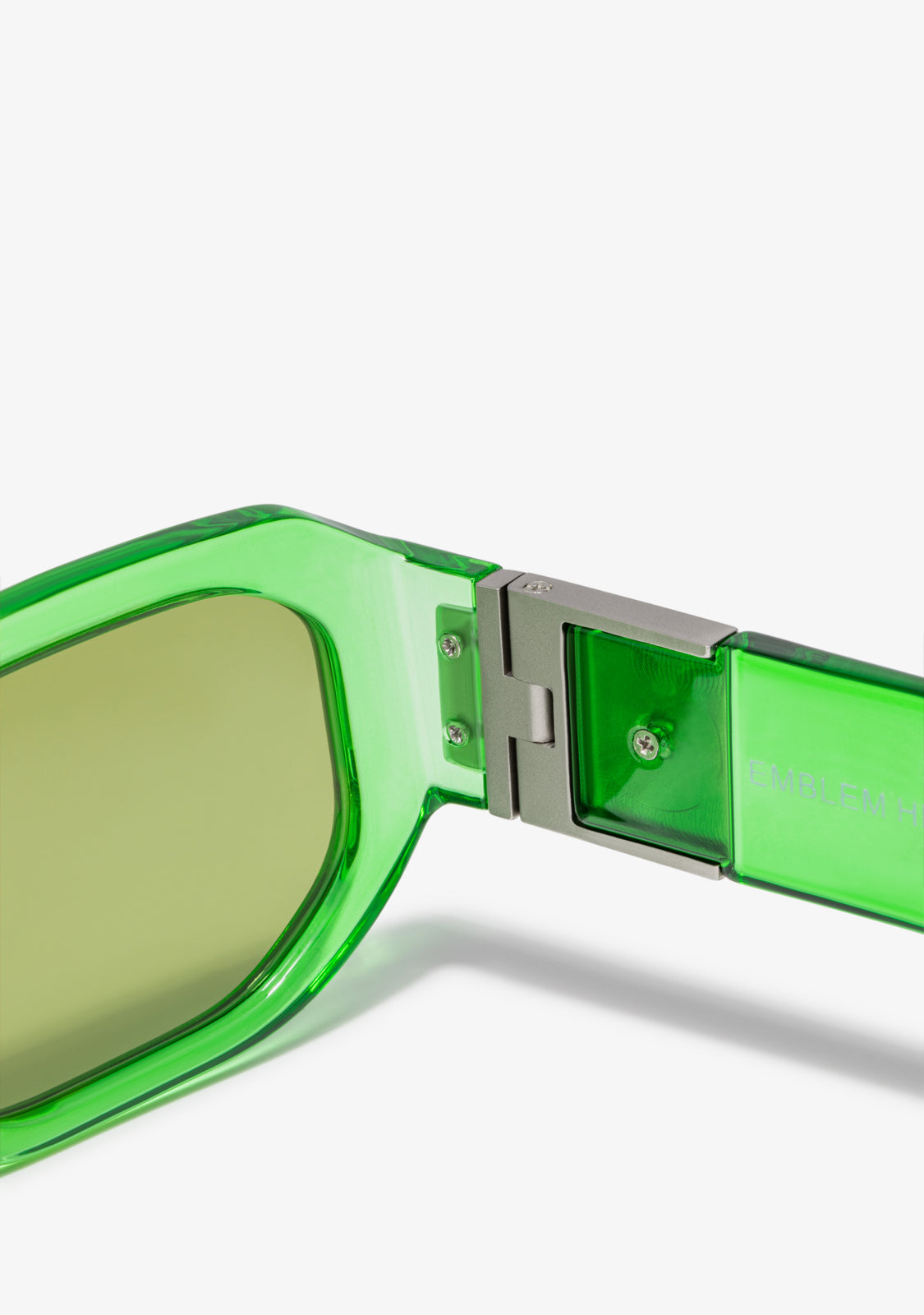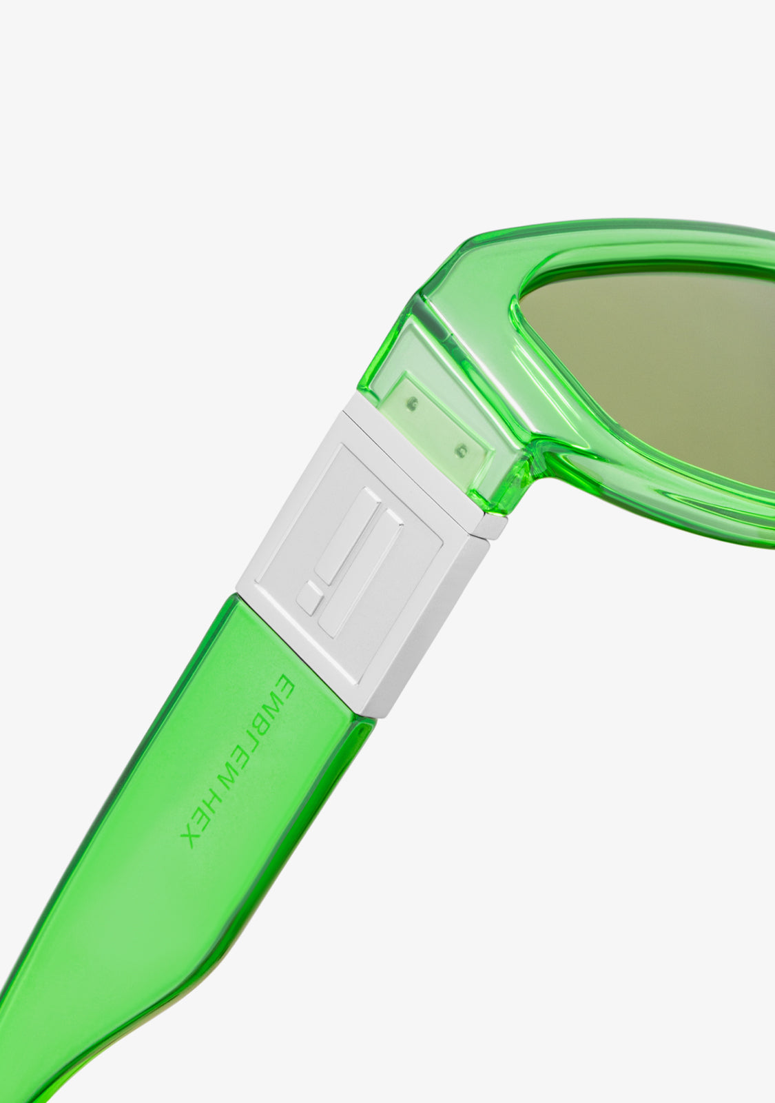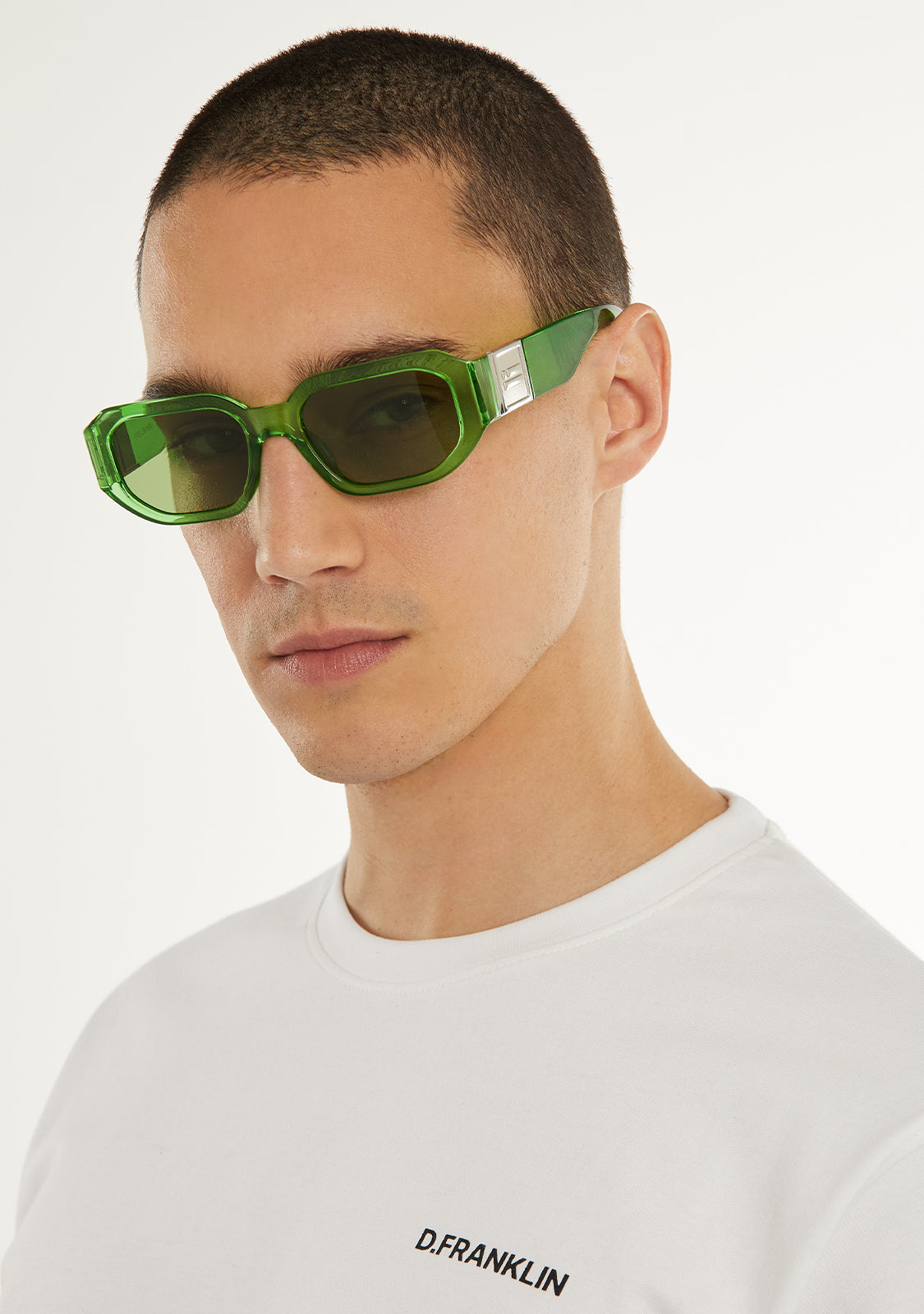 Green polarized lenses and matching frame highlight the uniqueness of this design. It features our distinctive D.Franklin flag with a metallic gold finish on both temples. The 52mm lens width and 139mm front frame are joined by an asymmetrical 140mm temple.