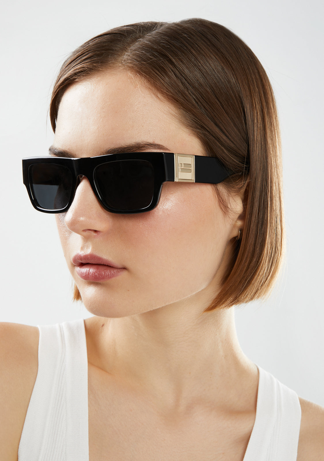 Linear front sunglasses. A model that captures the urban aesthetic in a rectangular frame. The real star for your most daring outfits. With metallic details to frame your features.