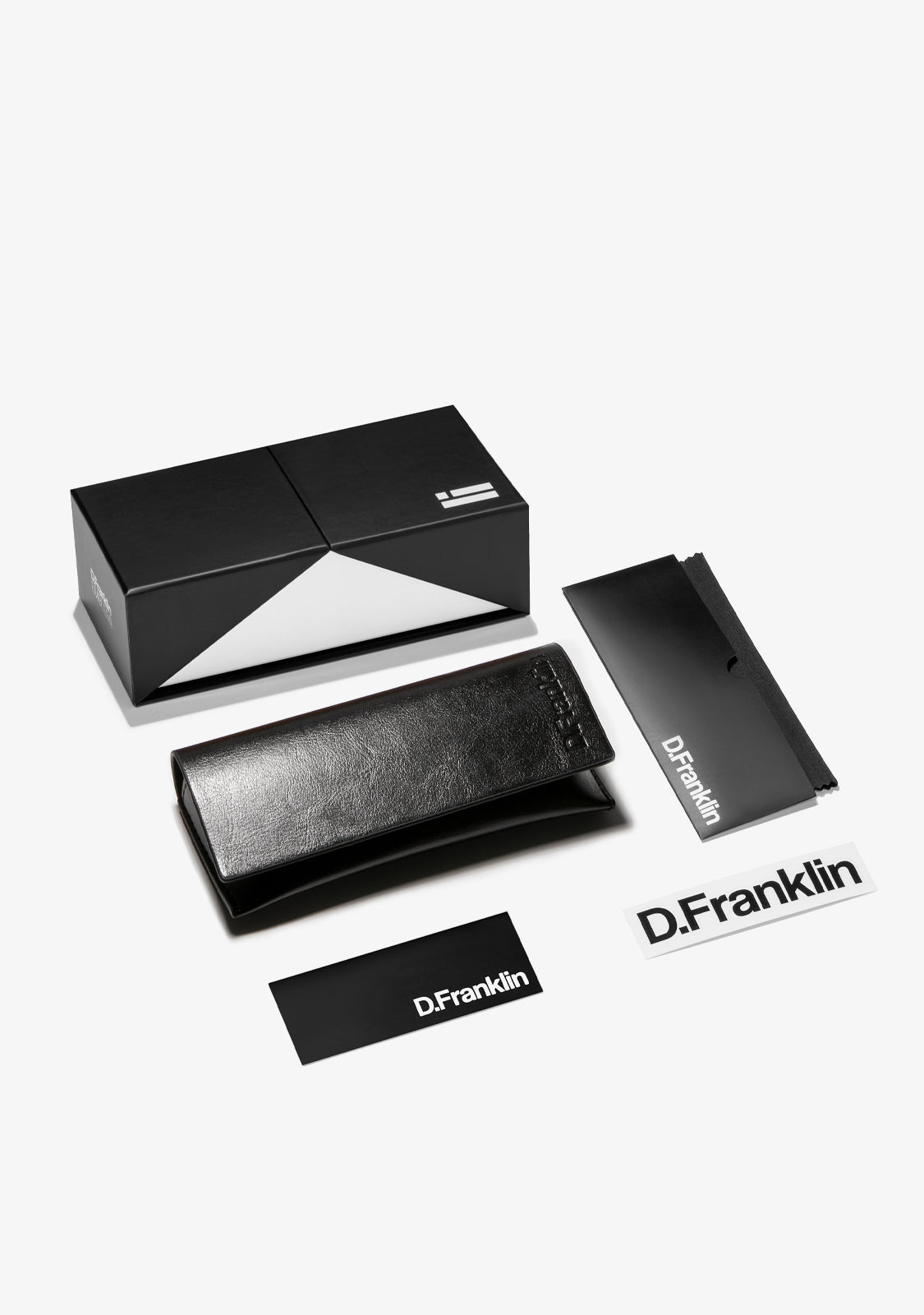 Smoked polarized lenses and tortoiseshell frames enhance the aesthetics of this design. It features our signature D.Franklin flag with a metallic gold finish on both temples. With a lens width of 52mm and a 141mm front frame, these glasses will flatter most faces. The side temples have a length of 140 mm.