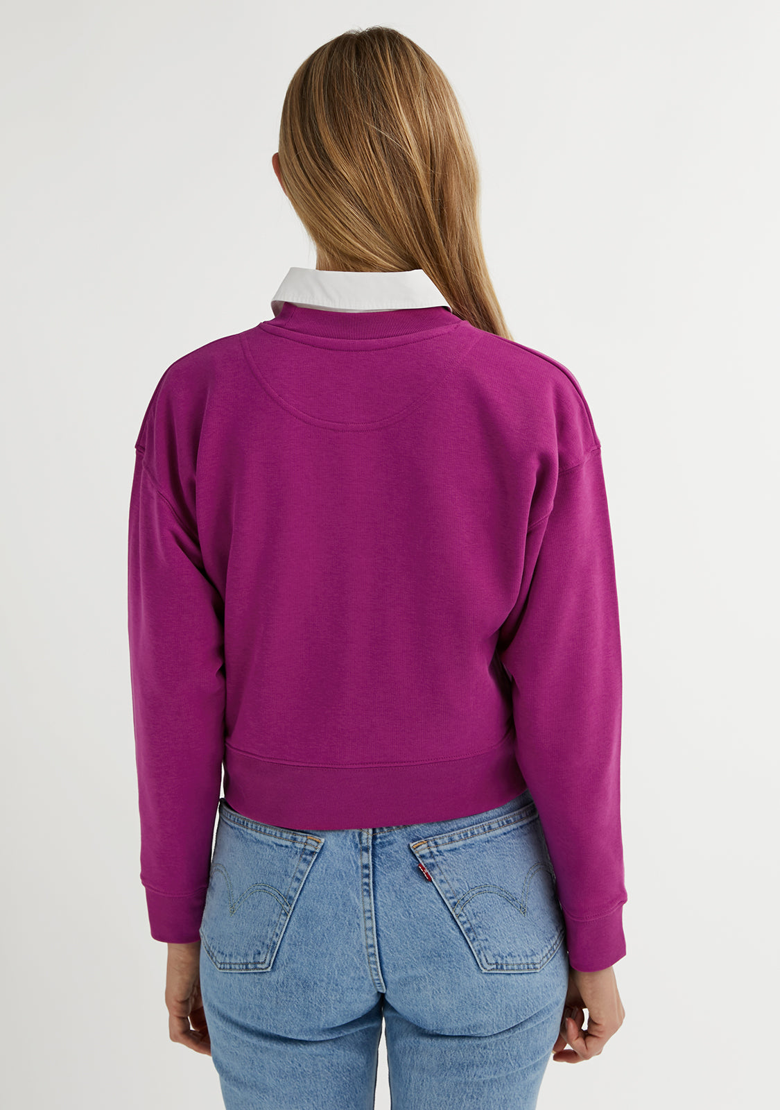 Embroidery Logo Cropped Crew Neck Sweatshirt / Orchid