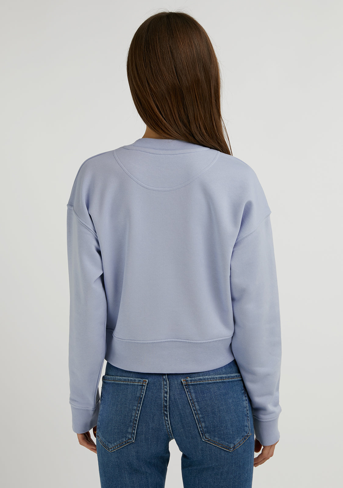 Embroidery Logo Cropped Crew Neck Sweatshirt / Serene Blue