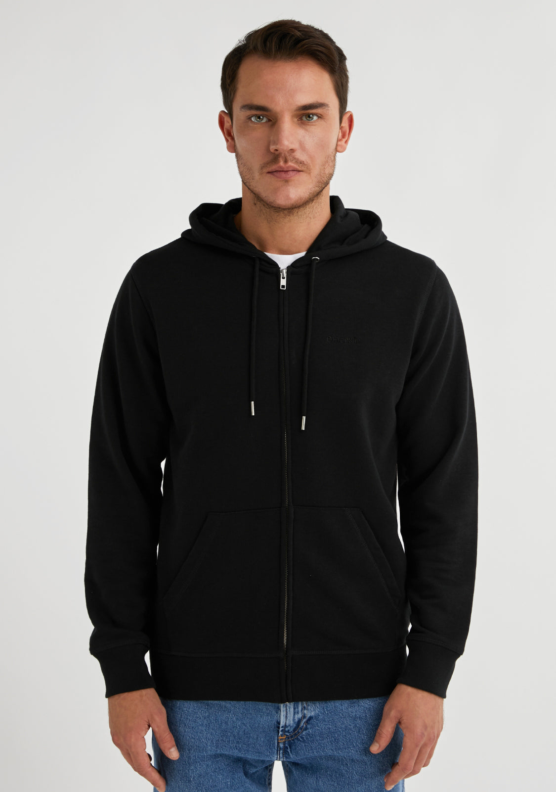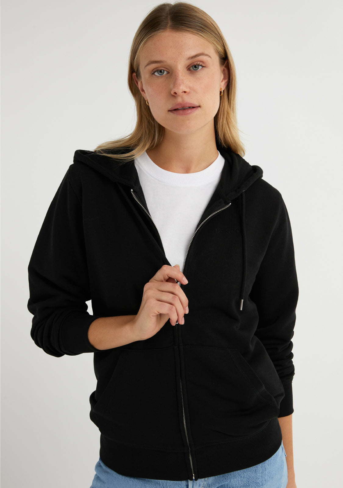 Join the comfy trend with our Embroidery Logo Zip Hoodie Black. Features a covered centre front zip and hood. Made from organic cotton. Convenient kangaroo pocket. Close-fitting sleeves. It will give you great breathability, stretch and comfort.