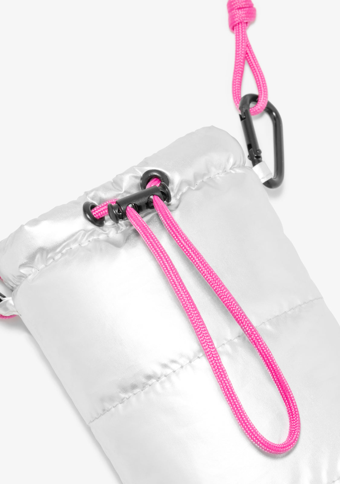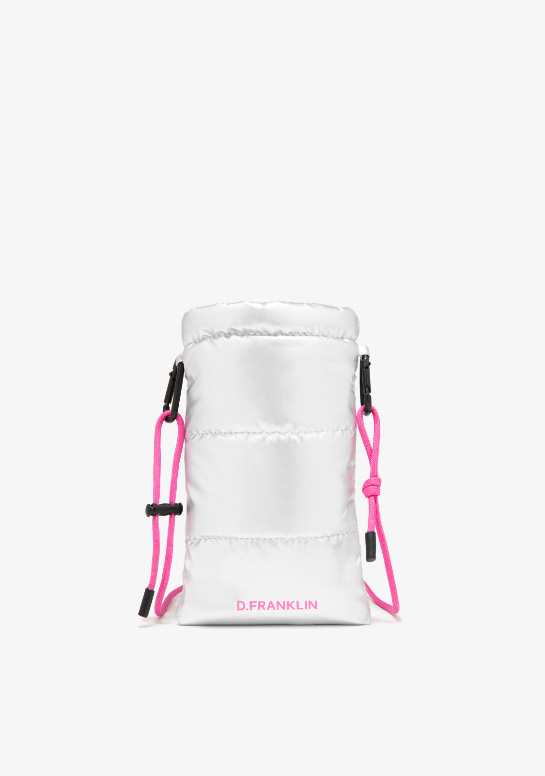 This model with silver finish has a removable fuchsia cord thanks to its carabiners that allow you to adapt its length. It has an adjustable closure and a fuchsia D.Franklin logo screen-printed on the front.