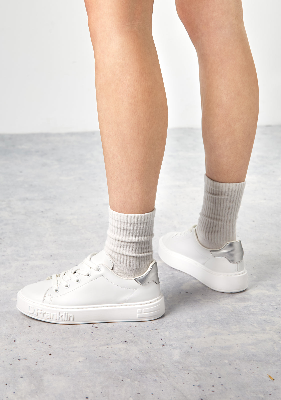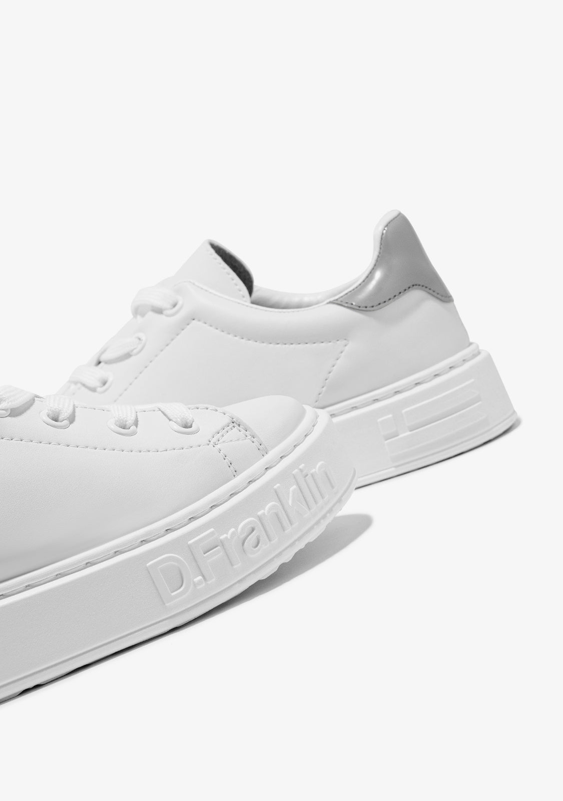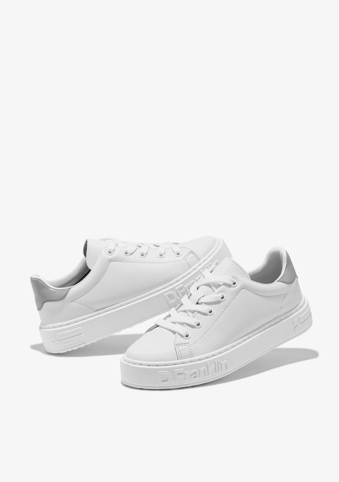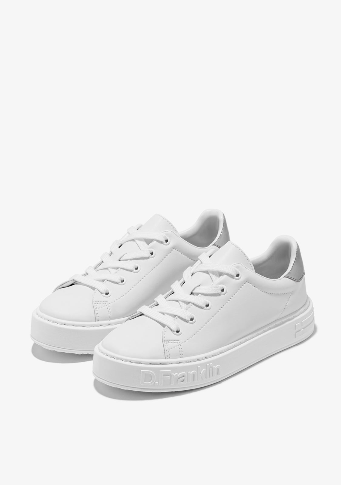 The D.Franklin Gumme 101 shoes breathe the energy of the big capitals with a simple design in white faux leather and silver details. It features a 3.5cm high sole for lightweight cushioning with every step. With adjustable cotton laces for a perfect fit.