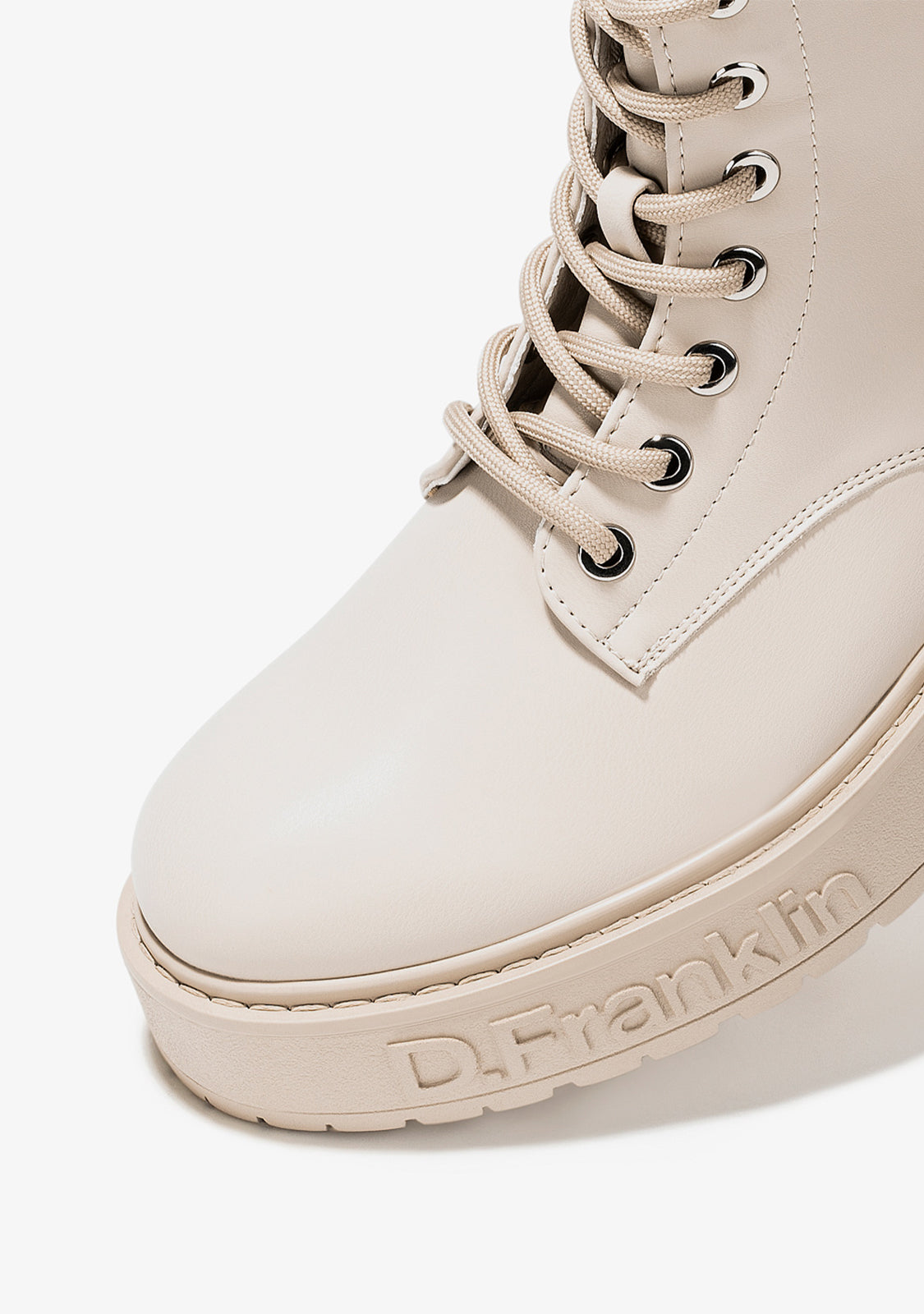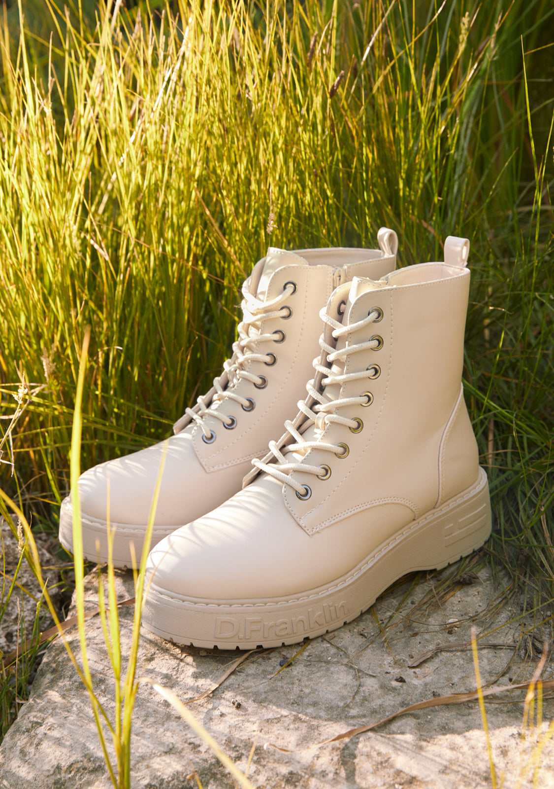 This beige D.Franklin model features an inside zip on one side and adjustable cotton laces. The track-style sole provides unrivalled grip. The embossed logo and emblem personalisation on the wedge and toe cap.