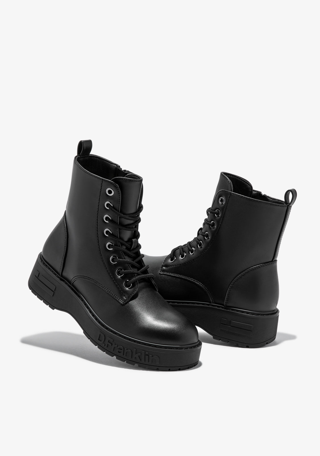This black D.Franklin model features an inside zip on one side and adjustable cotton laces. The track-style sole provides unrivalled grip. The embossed logo and emblem personalisation on the wedge and toe cap.