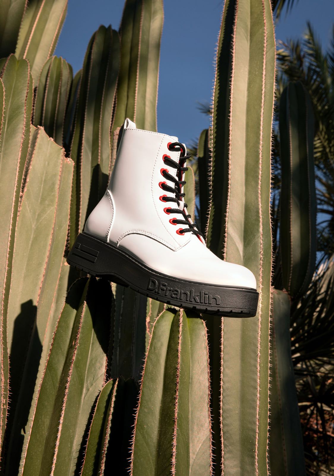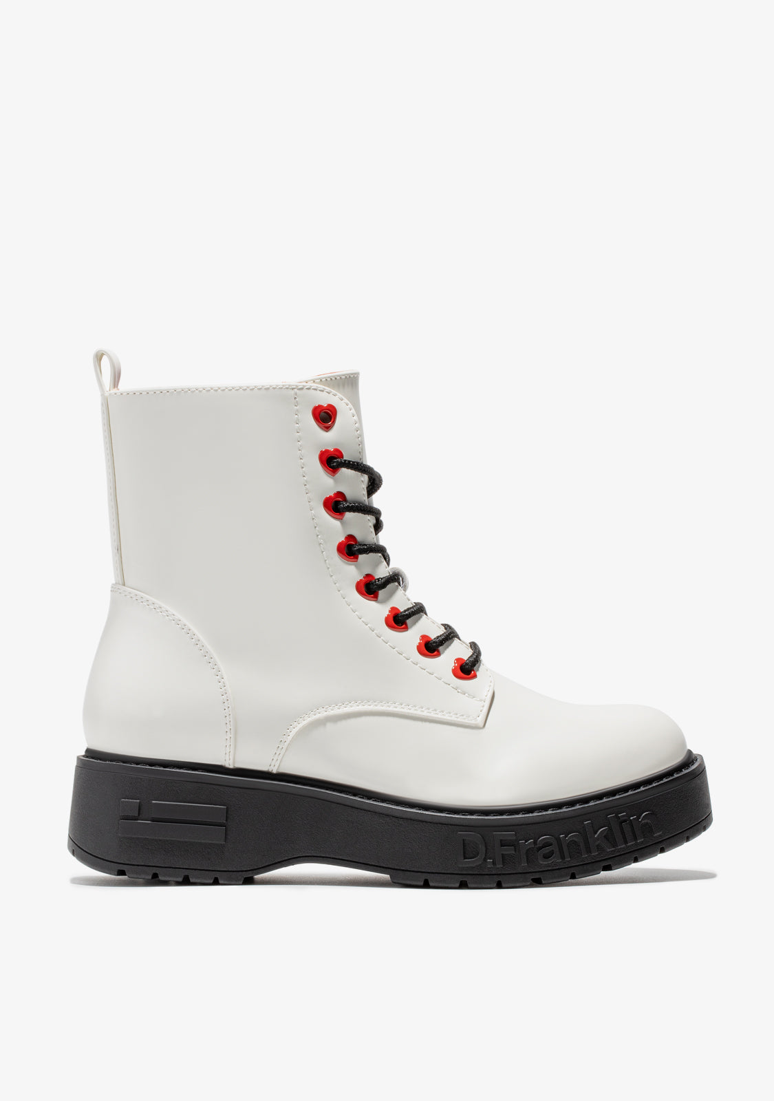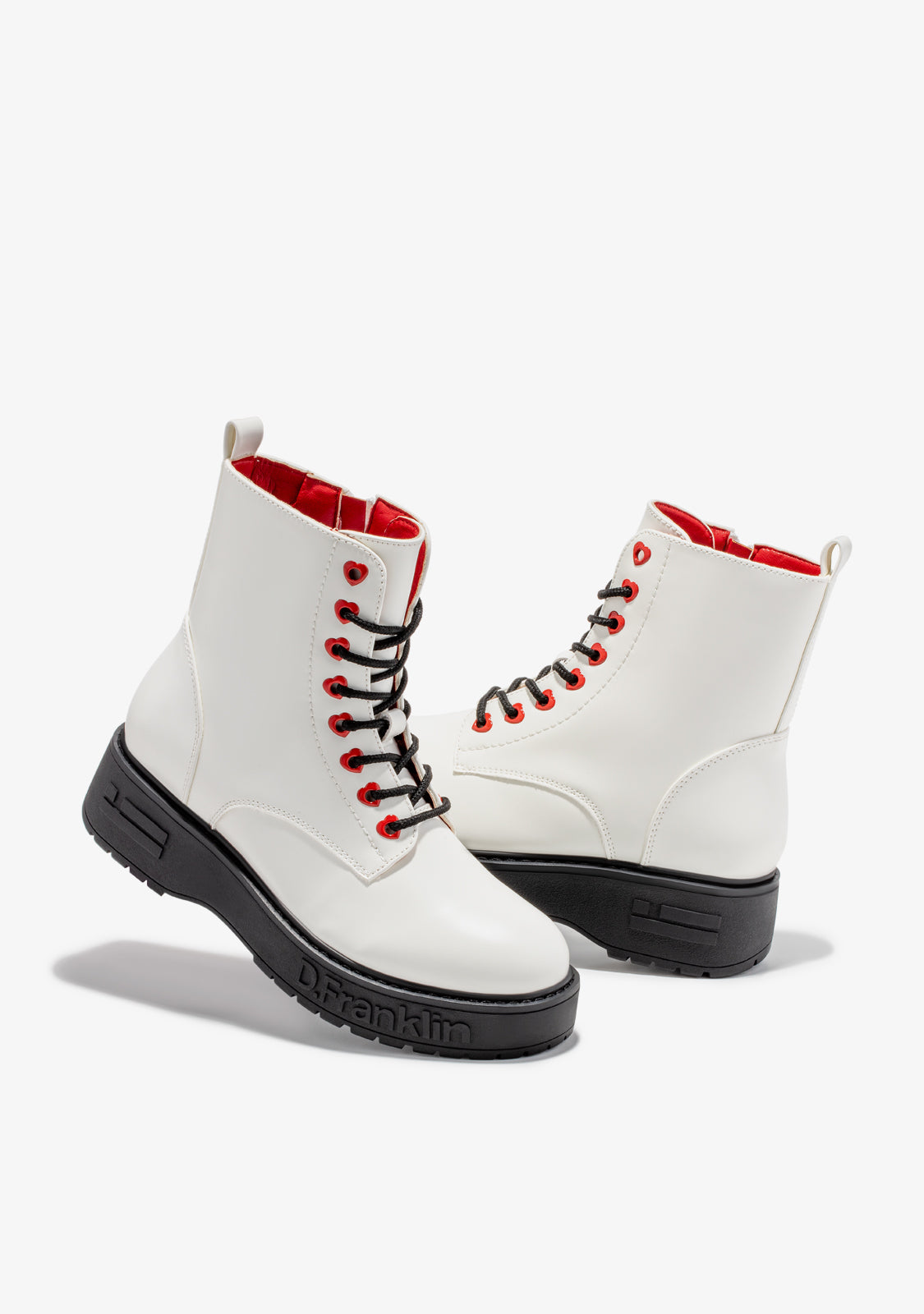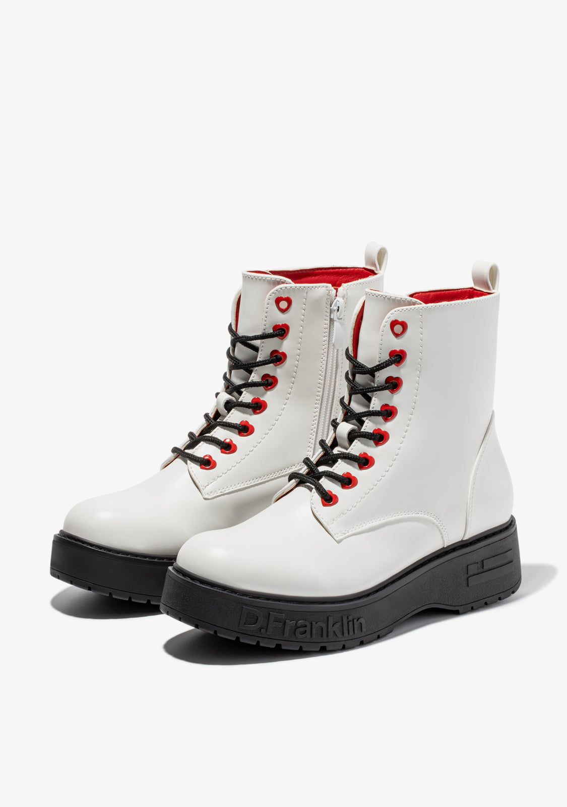 This white D.Franklin model features an inside side zip and heart-shaped eyelets for a perfect fit. A track-style sole provides unrivalled grip. The embossed logo and emblem personalisation on the wedge and toe cap.