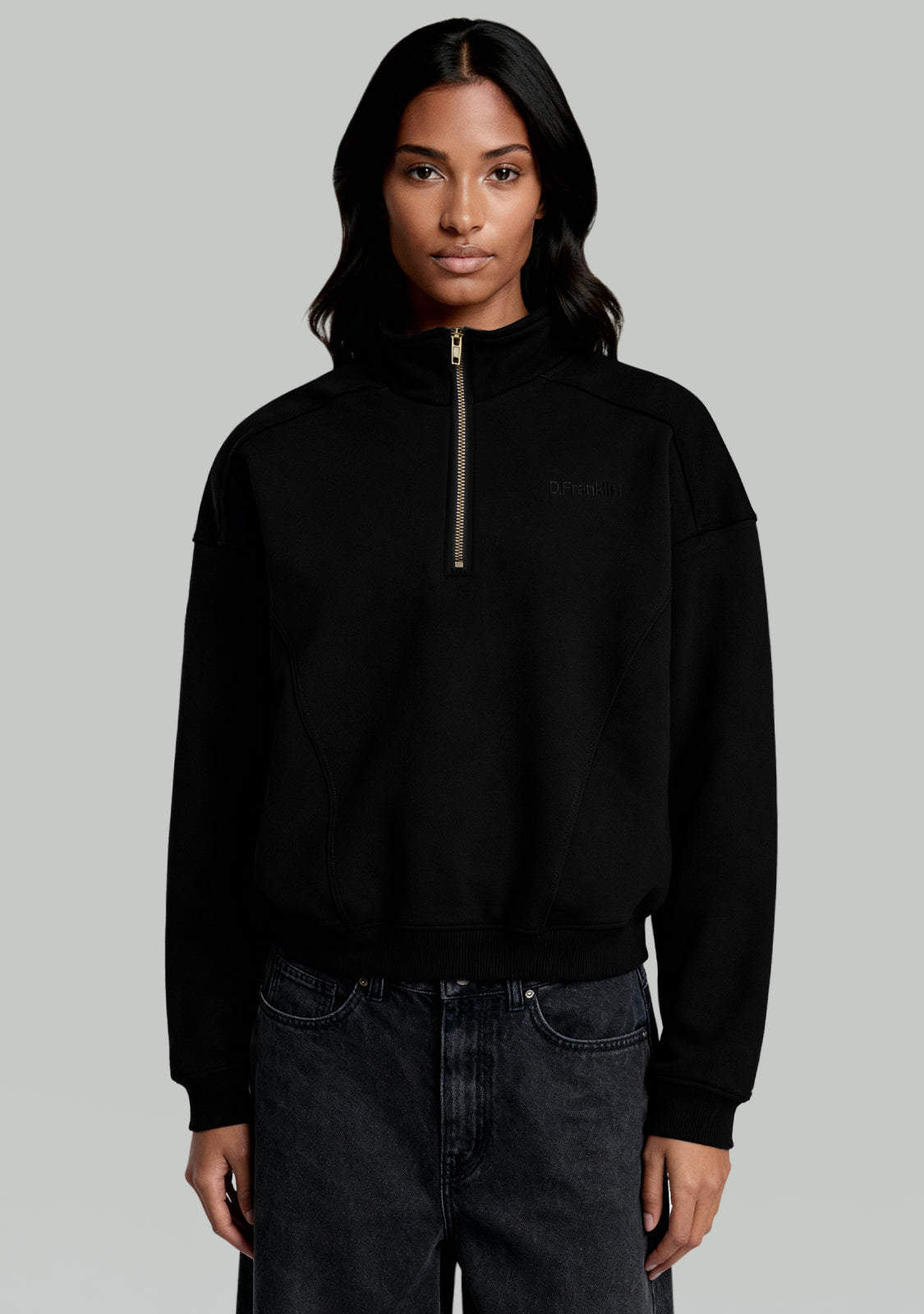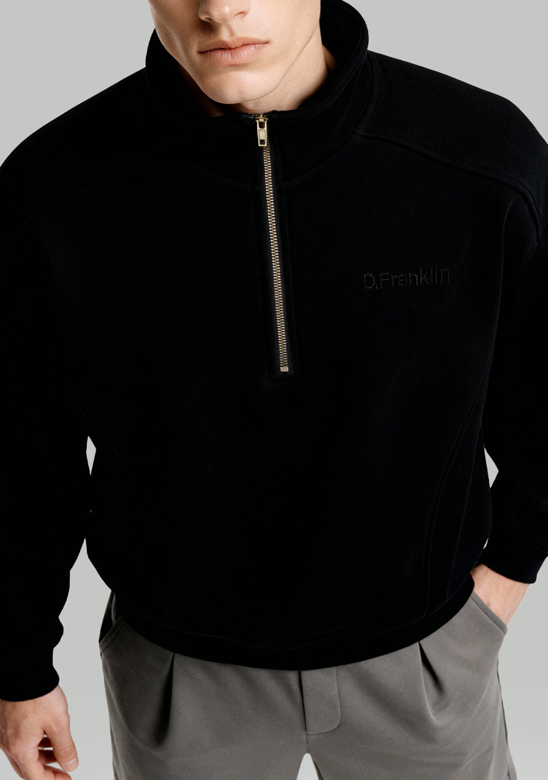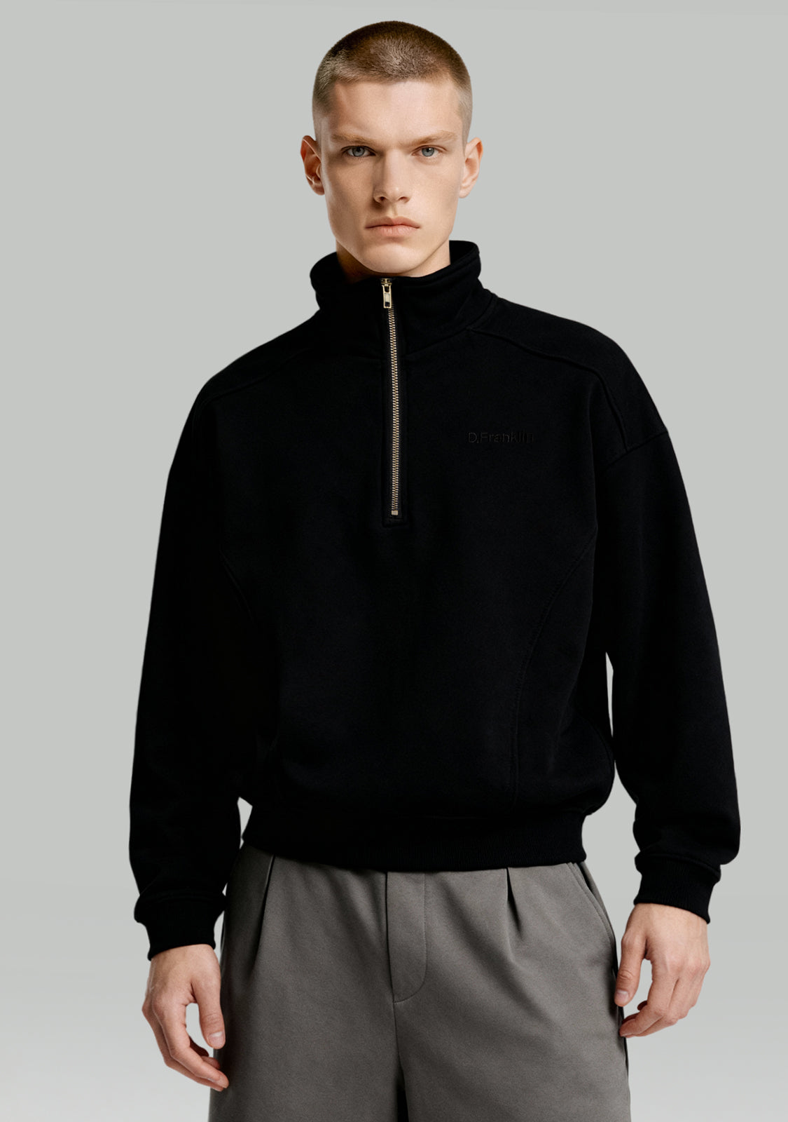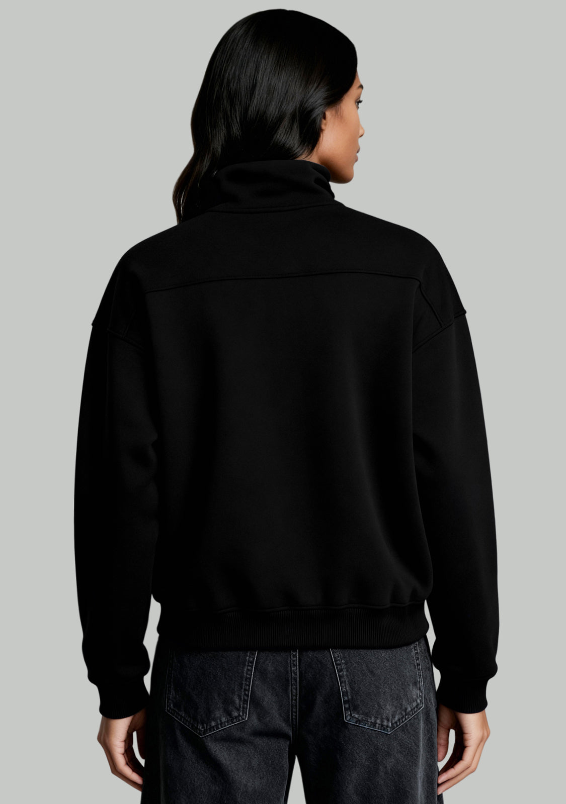 Half-Zip Sweatshirt Black is a unisex sweatshirt that combines comfort with modern structure. The half-zip collar adds flexibility to your fit, while the defined seams break the plainness for a more dynamic look.