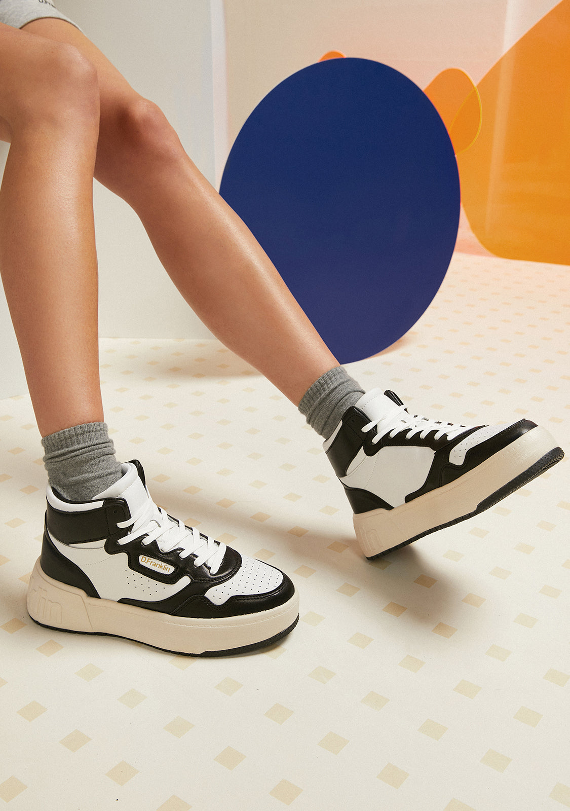 The Court D.Franklin trainers are crafted with black detailing and cotton laces. The contrasting sole features an embossed logo on both the heel and sole. They have 4cm of height and a phylon sole for lightweight cushioning.