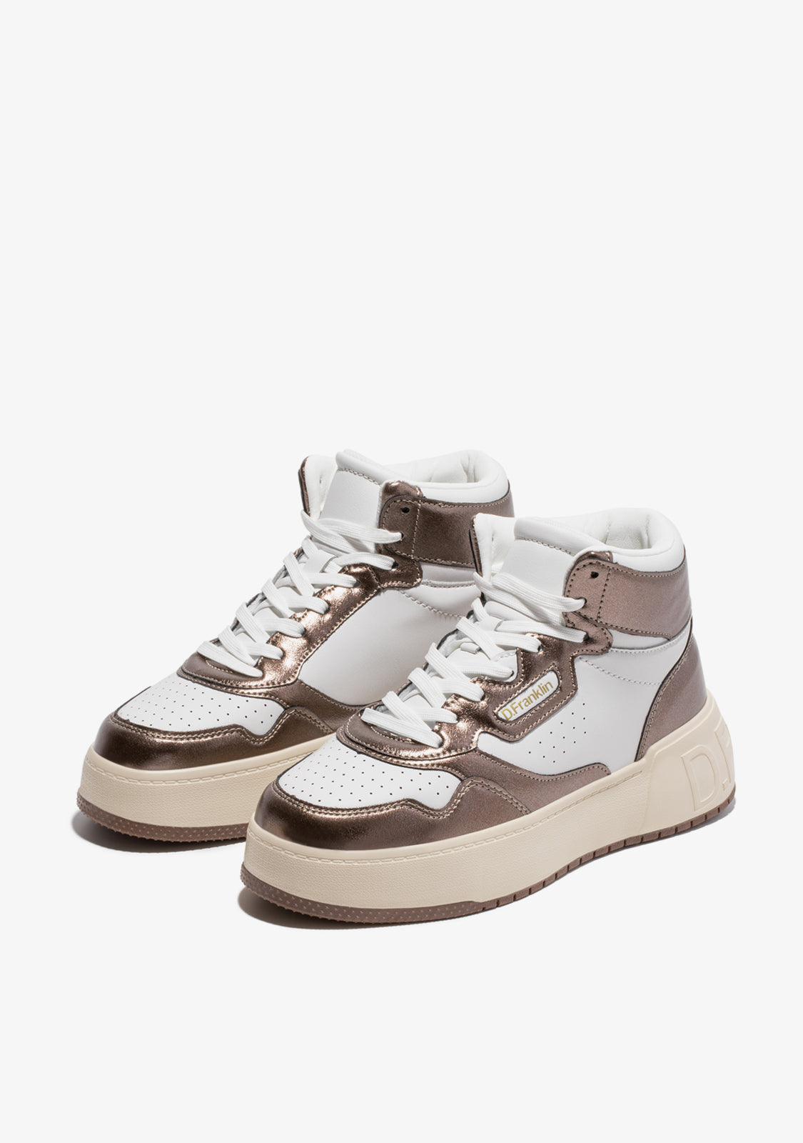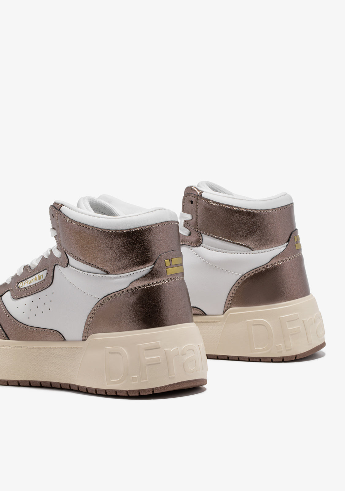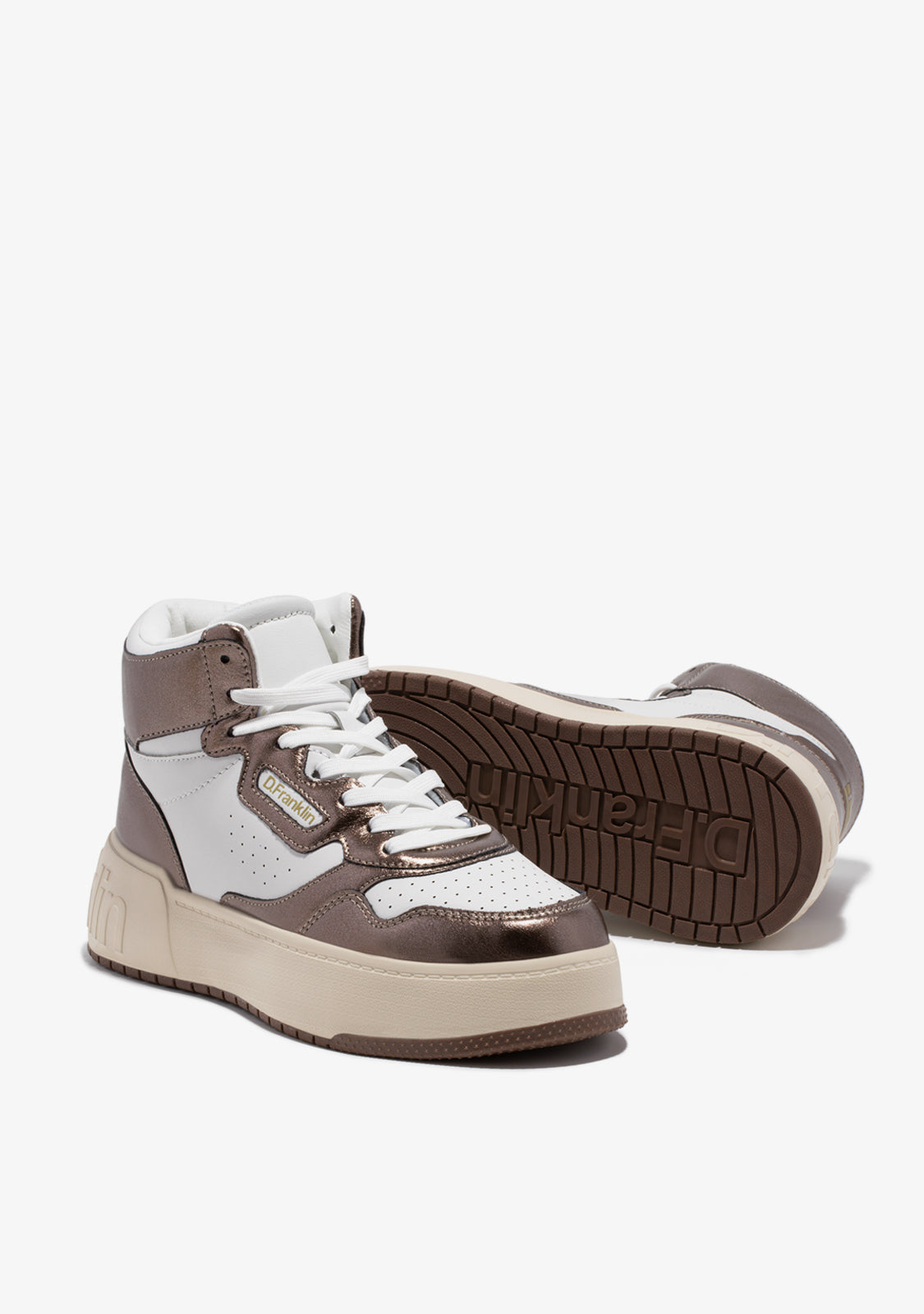 The Court D.Franklin trainers are crafted in dark bronze with cotton laces. The contrasting sole features an embossed logo on both the heel and sole. They have 4cm of height and a phylon sole for lightweight cushioning.