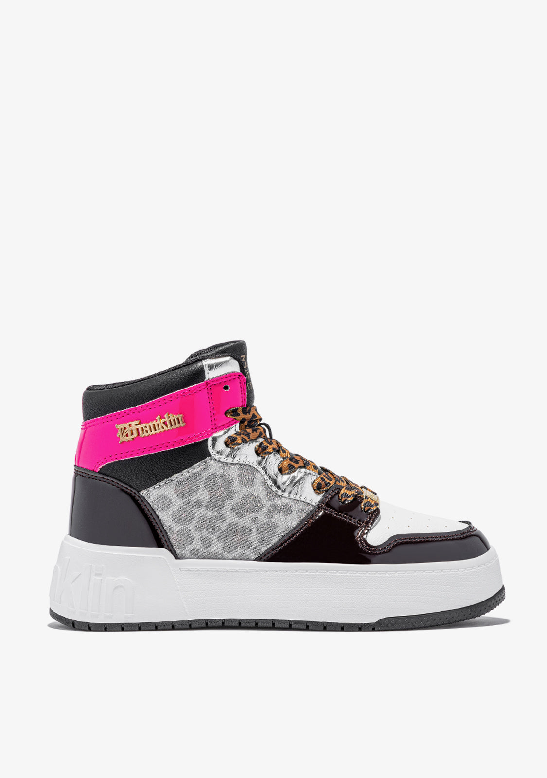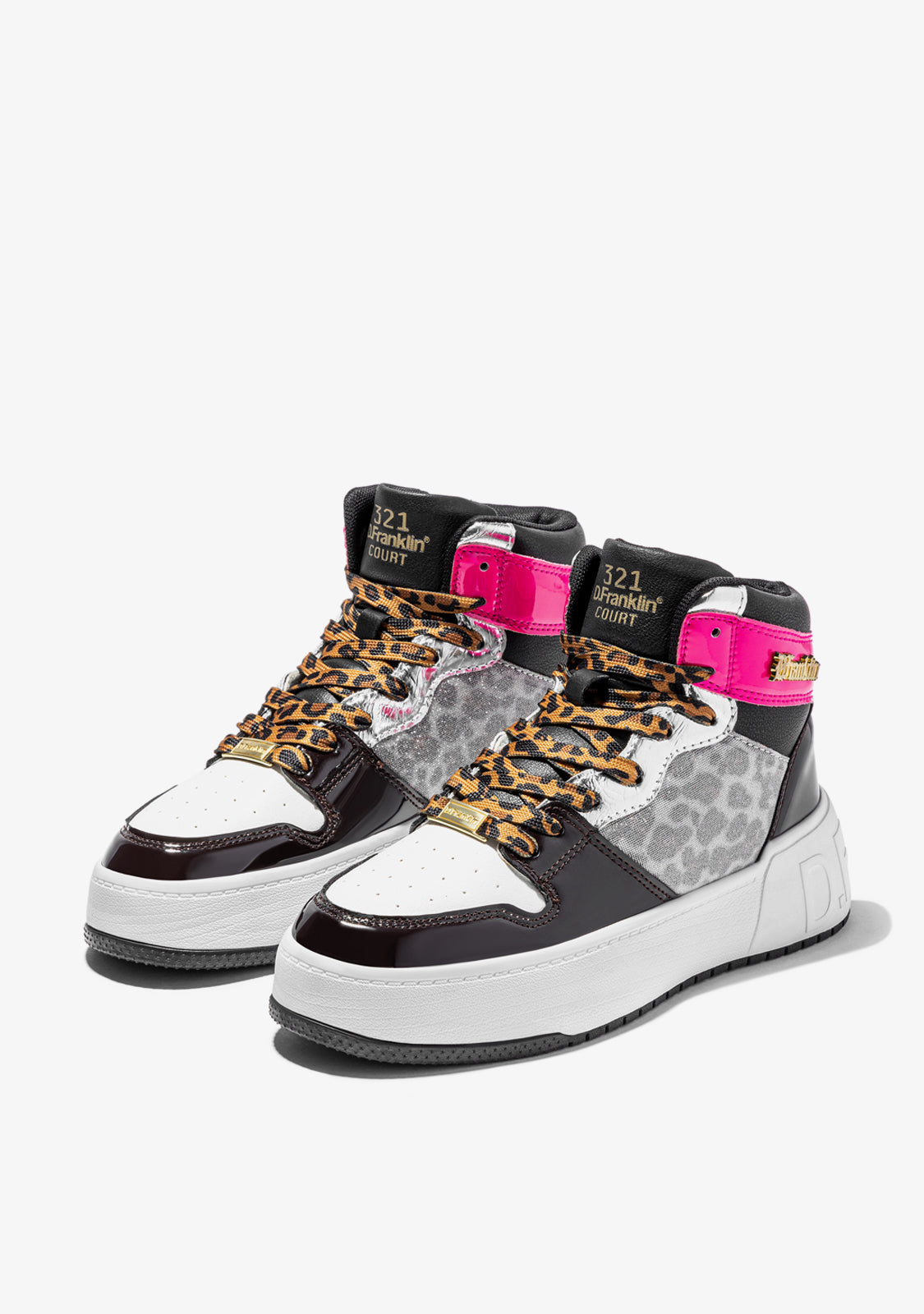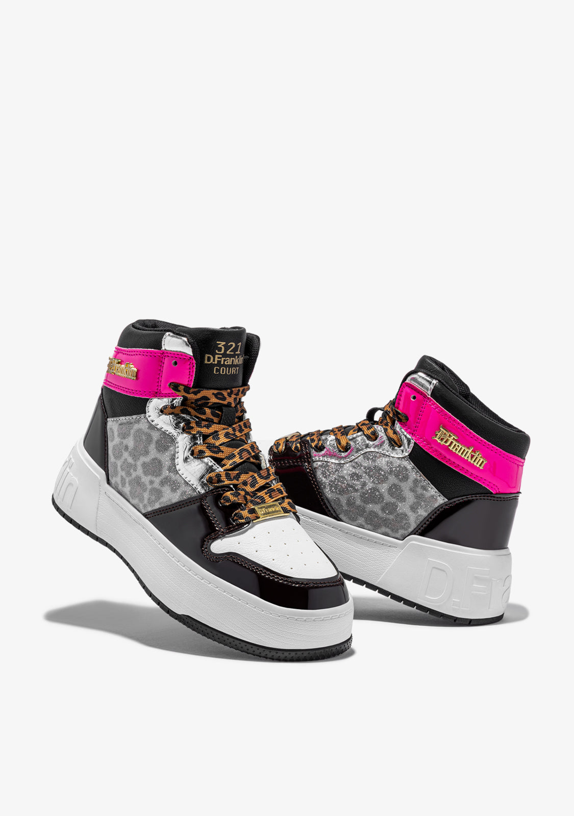 Introducing D.Franklin's Court Collection. A new sports-inspired model, created from the field to offer a bold and versatile design. Now, with a hi-top design, the High Court Multi Leopard is characterized by a reinterpretation of the classic layers line.