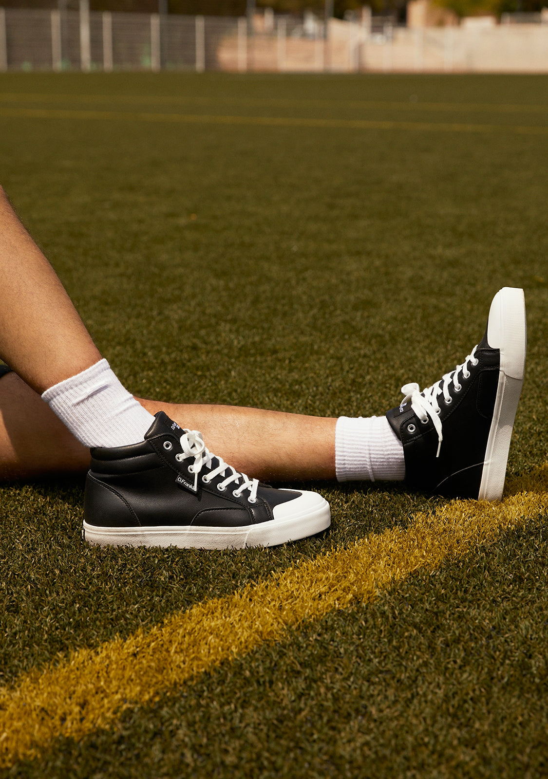 Made from black synthetic leather. These trainers feature cotton laces as well as our emblem and flag on the heel. The slip-resistant sole allows for a comfortable, extra-light tread.